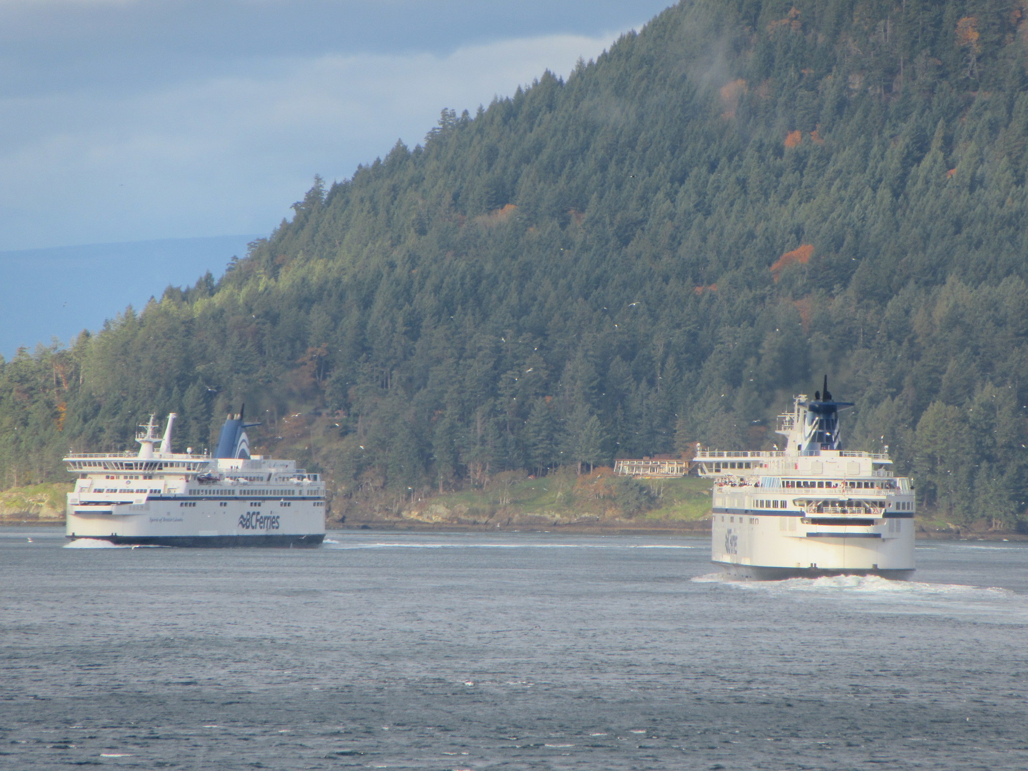 Now, as cyclists, we can say Active Pass is right there! Look at the ferries. We are the people on shore that the ferry passengers are idly gazing at, without really knowing where they are!