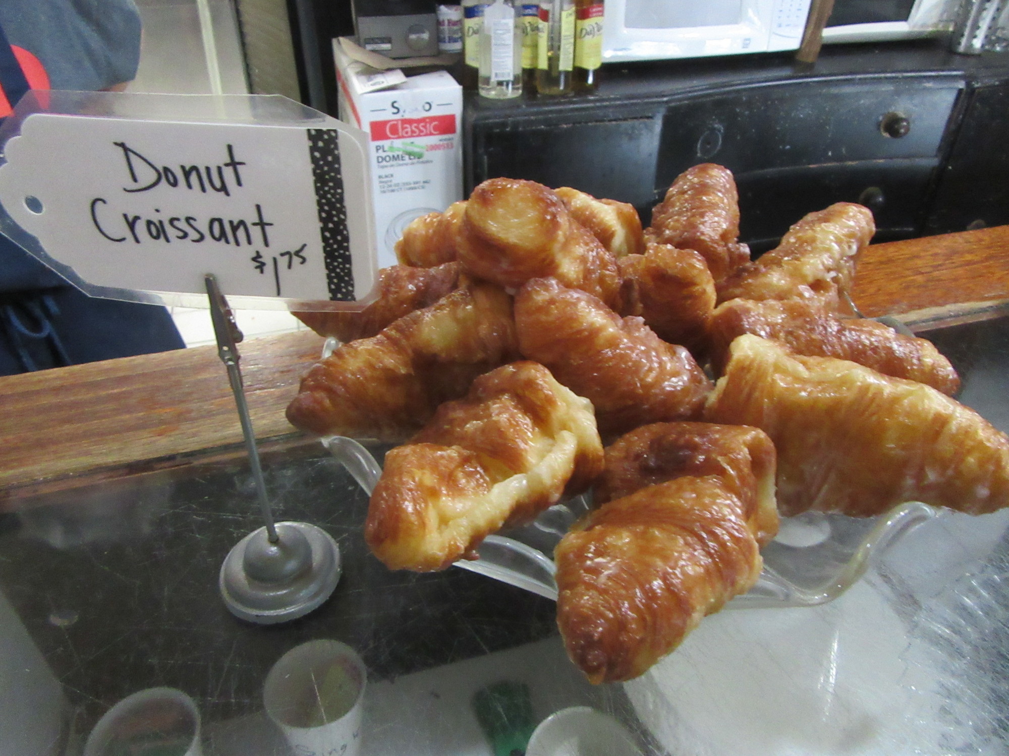 What we would do, rain or shine in fact, would be to make the bakery our first stop. Baking is double good in the wind and rain. It seemed like the nearby and inappropriately named "Sunny Mayne" bakery had a bit of French DNA. The first clue was a stack of (ok, let's face it) donuts, labelled donut "croissant". The second clue was the presence of "pain au chocolat", though labelled "chocolate croissant". The last clue was a hand painted sign that read "Boulangerie". In fact, I hauled the baker out of the back. Under interrogation, she denied any "French Connection". Her stuff was really good nonetheless.