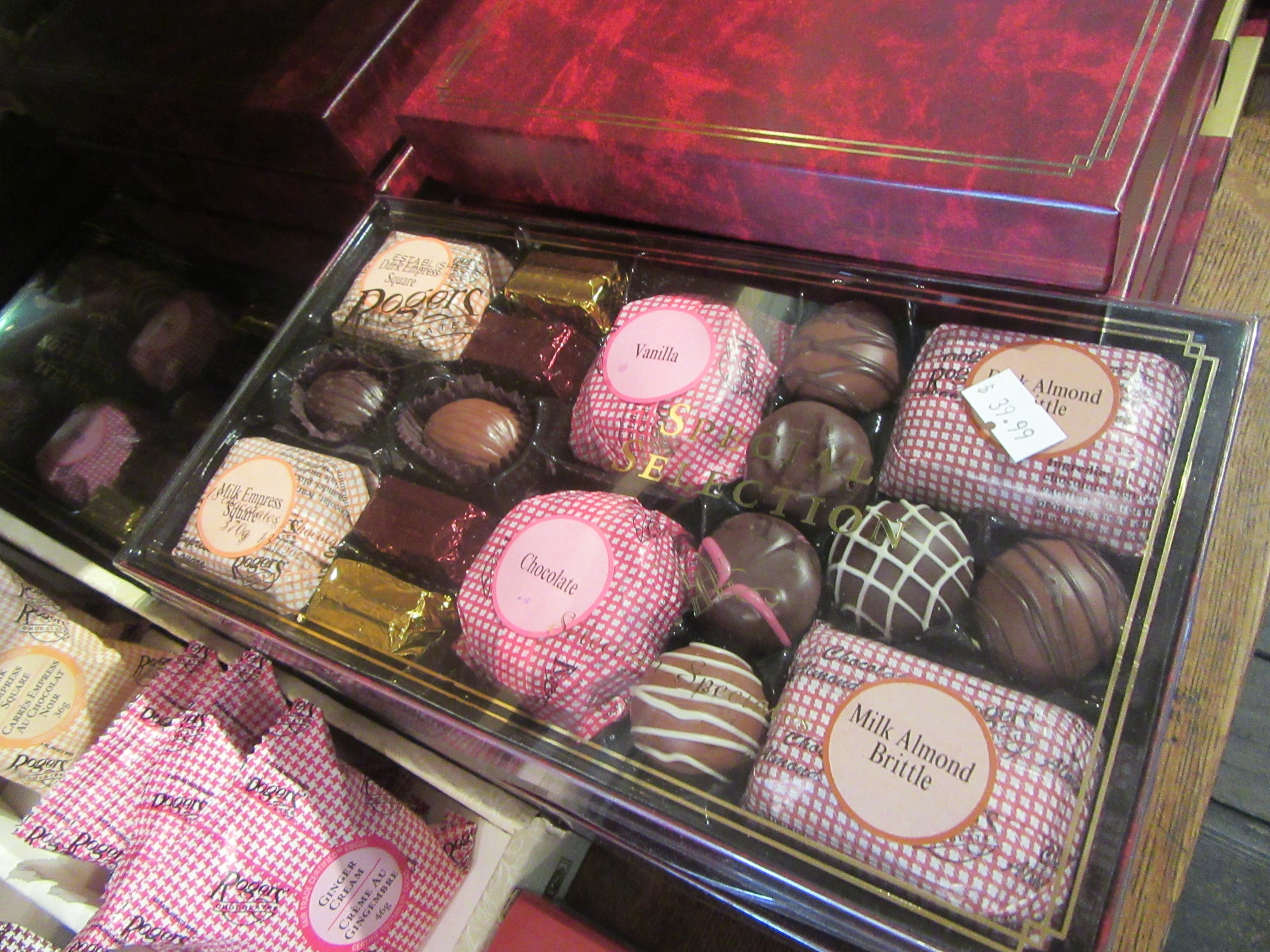 The gift shop was also interesting, at least to this keen observer. It was all Canadian souvenirs, which makes sense, I guess. For US souvenirs, you need to be on the US side. It's a little confusing, since the ferry wants to be paid in $US, and by the time you hit the gift shop you have already passed US immigration. The shop did have some nice Canadian themed key rings. That is, key rings with indigenous art designs. It's a little sad that post confederation (1867) Canada has developed little in art or design and continues to appropriate stuff from the people who were here before that. Well ok, there were Rogers Chocolates,which are genuinely a Victoria thing, and maple syrup (at almost exactly 4x the grocery store price), and "Moose Droppings" candies. Now all that is truly Canada!