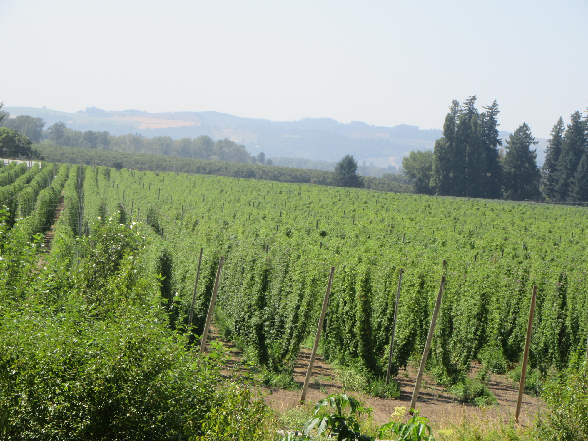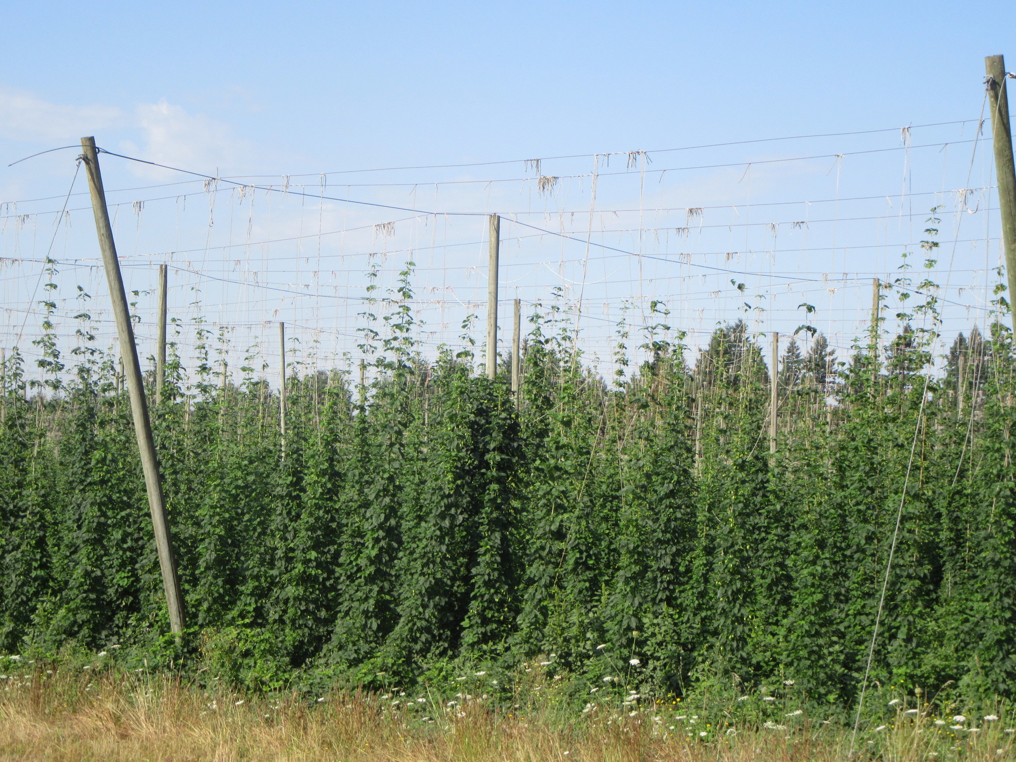 The most remarkable part of the day's experience was the countryside we passed through. Avi and I agree that you could easily call this a crop theme park. Except that there were no signs or narrated tours, the sights came thick and fast enough for this to feel almost planned. We saw huge orchards of hazelnut, shade and ornamental tree nurseries of all types, and acres and acres of hops. Then there were apples, plums, broccoli, strawberries, and blueberries. Blueberries! Oh my, we have never seen such productive bushes.