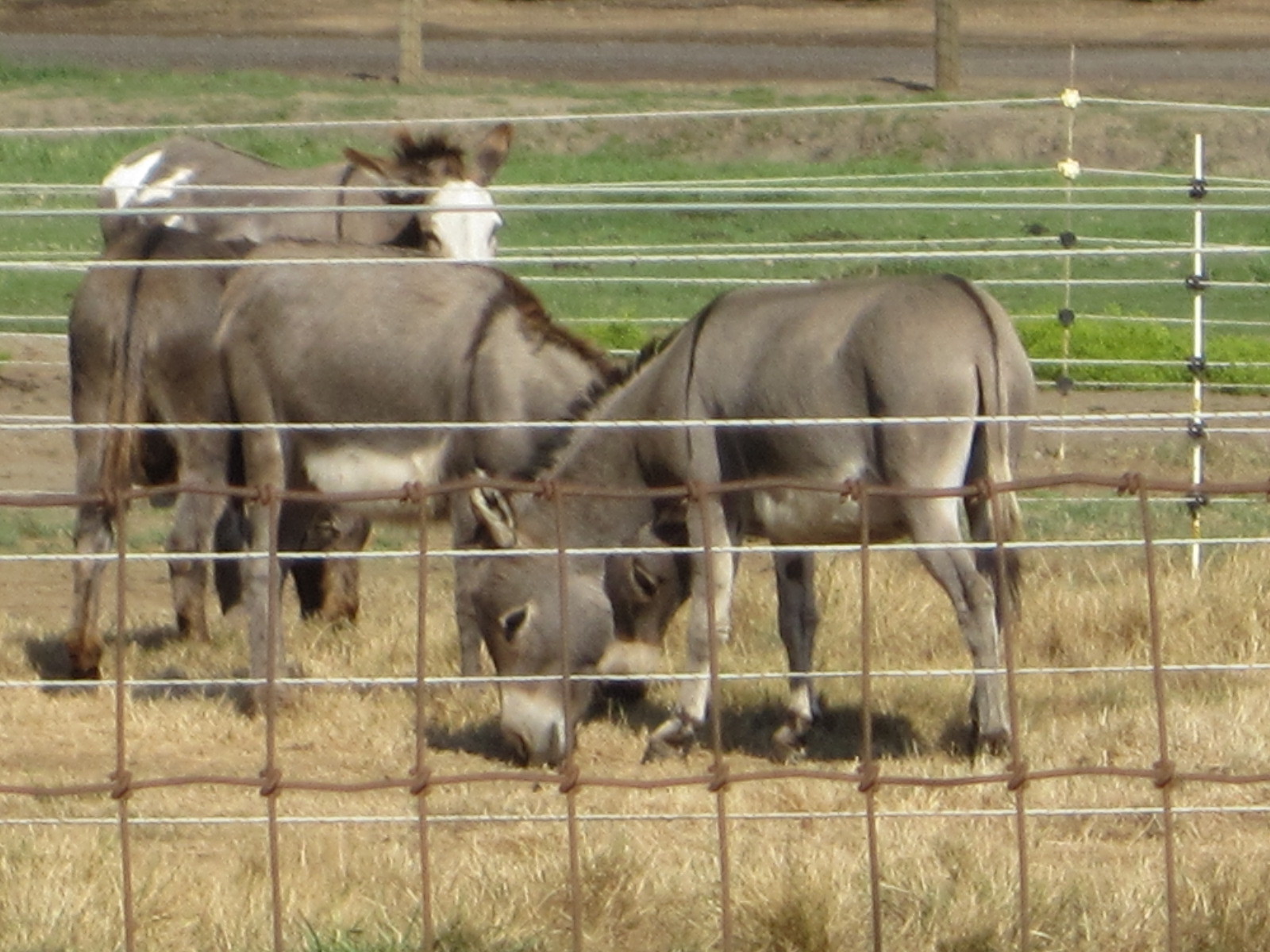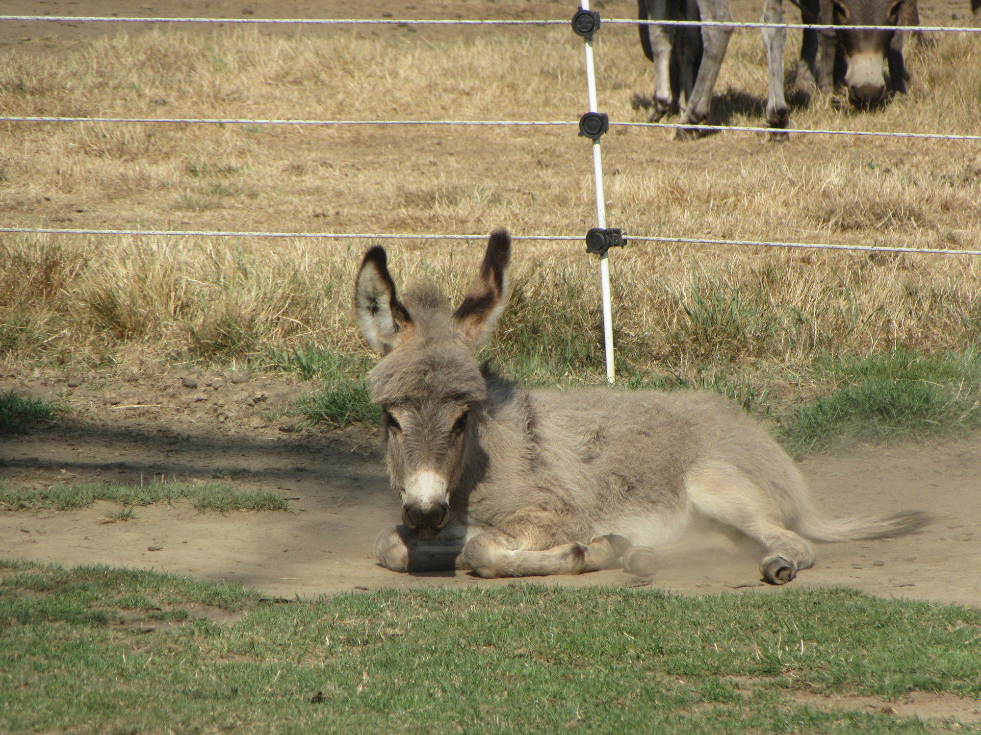 The temperature went up well beyond the forecast 33, but did not quite hit 40 C. Still, it was quite tiring, and we took a lot of care to keep ourselves and the kids drinking water. We stopped in the shade for a drink opposite one farm house, and had a lady exit with an armful of cold water bottles. That was really kind, and in fact that water made things a lot easier for us. Aside from the courteous car and truck drivers, we only ran into one other resident during the ride. We had stopped by a paddock housing miniature donkeys, just as the farmer passed on the road in his truck. He stopped ad told us about the donkeys. The baby is just one month old. He said his wife had quit raising children and moved to raising donkeys!