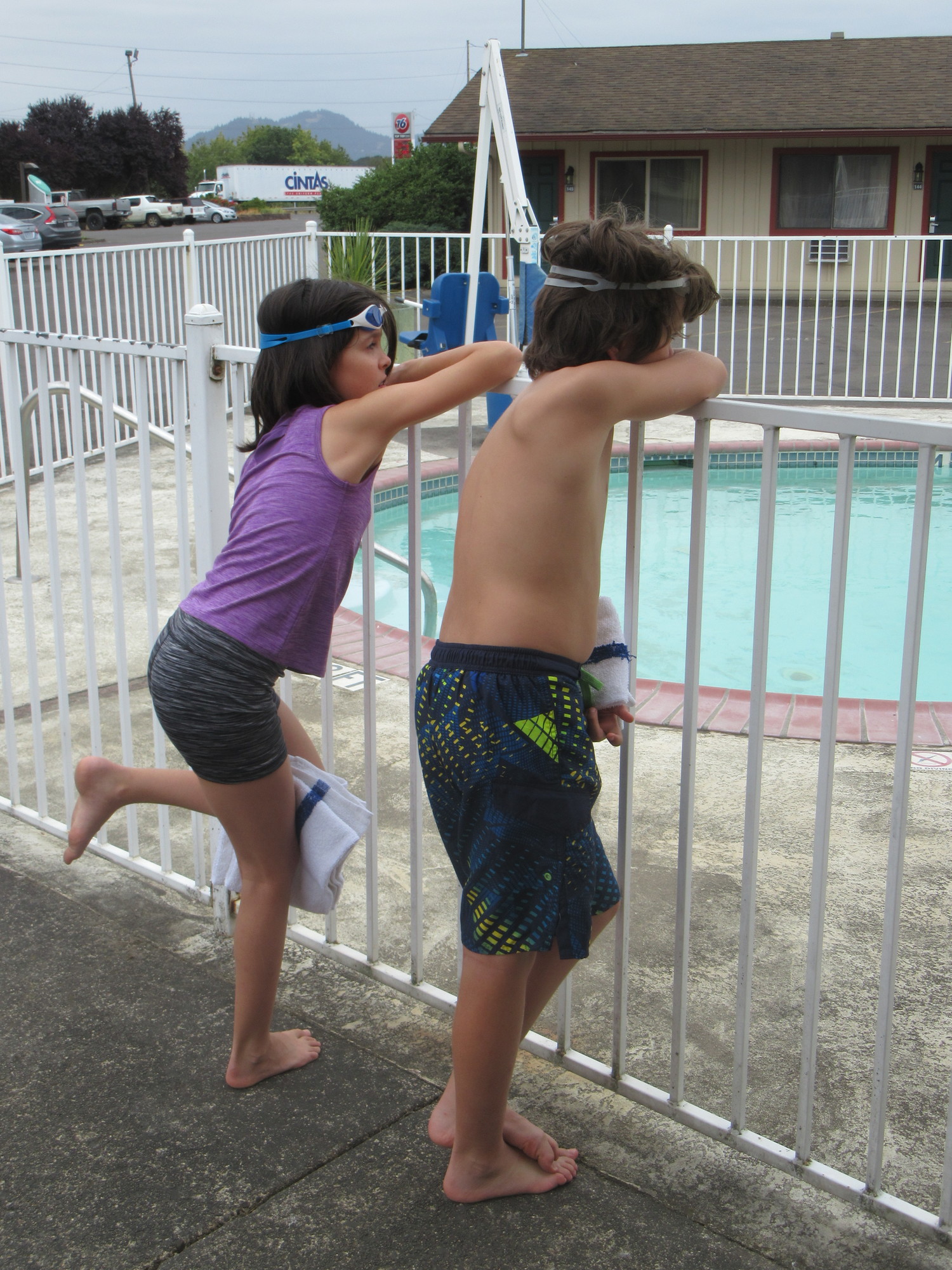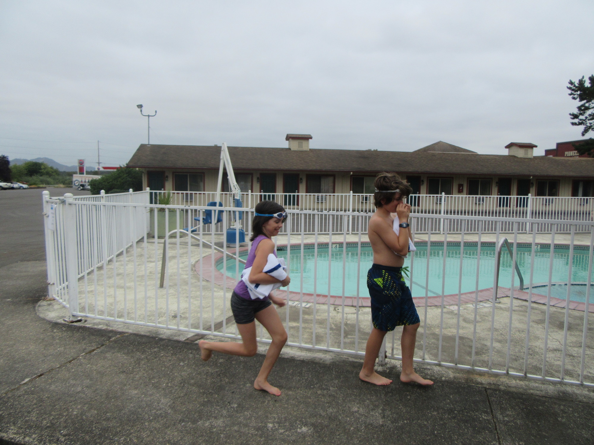 The motel is not the newest, but it's ok. For us a big advantage is that it is true motel style, with a single level and parking right out front. And our unit was the last one before the pool. So the kids began with two hours in the pool. Actually, the pool was locked. It may have been a while since they have seen an actual kid here, wanting to swim. In fact, of 30 units, there is only one other occupied. No wonder the check in lady said she needed time to get organized!