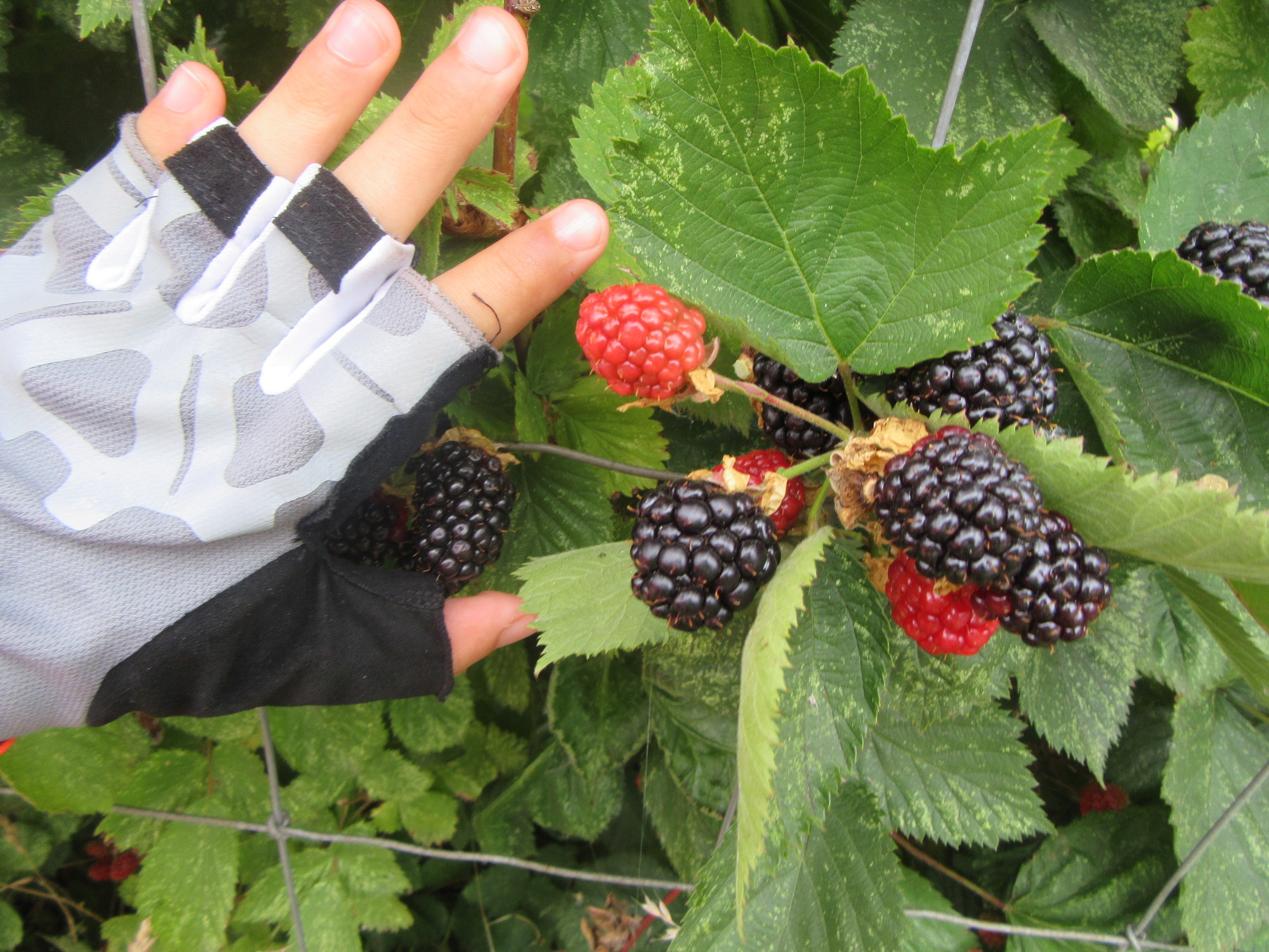 The best part of today's ride came just south of Albany, up until Highway 34. We found it was a reasonably quiet road, running by small holdings, or perhaps farm houses with larger acreages behind. The houses in any event had lots of gardens and fruit trees, making a very pleasant ride. At one place, a planting of what we took to be Marionberries (like blackberries, but with much bigger berries and thornless vines?) had overrun a fence and were out by the path. According to our official cycling rules (written by us!) fruit that does that is fair game!