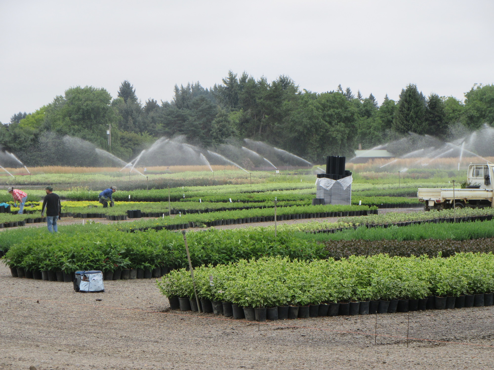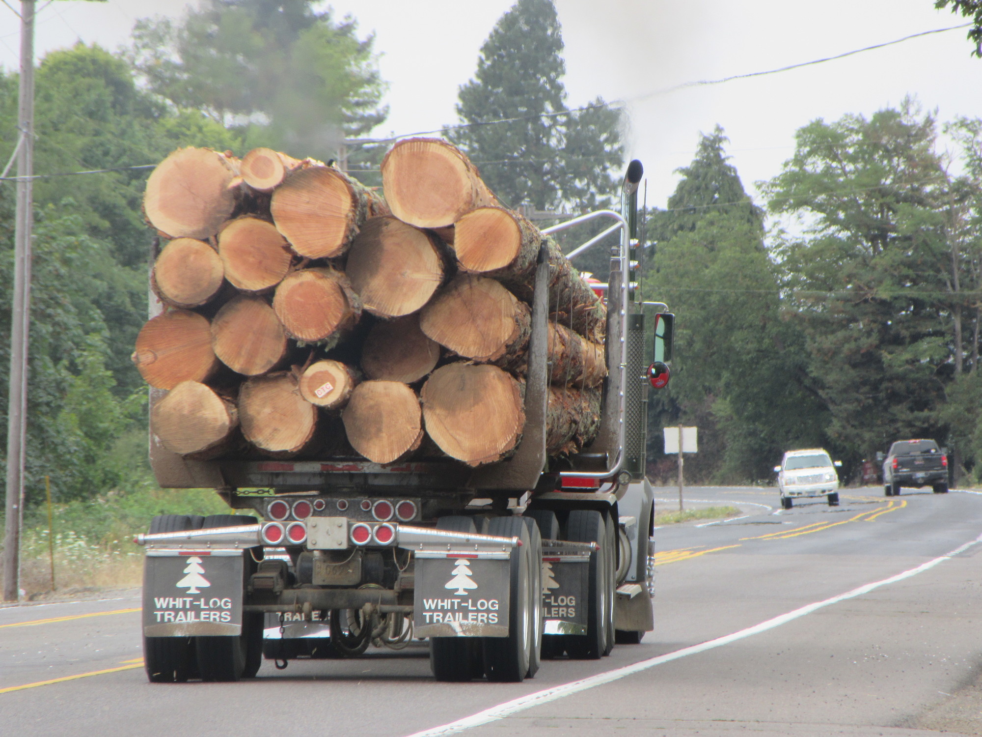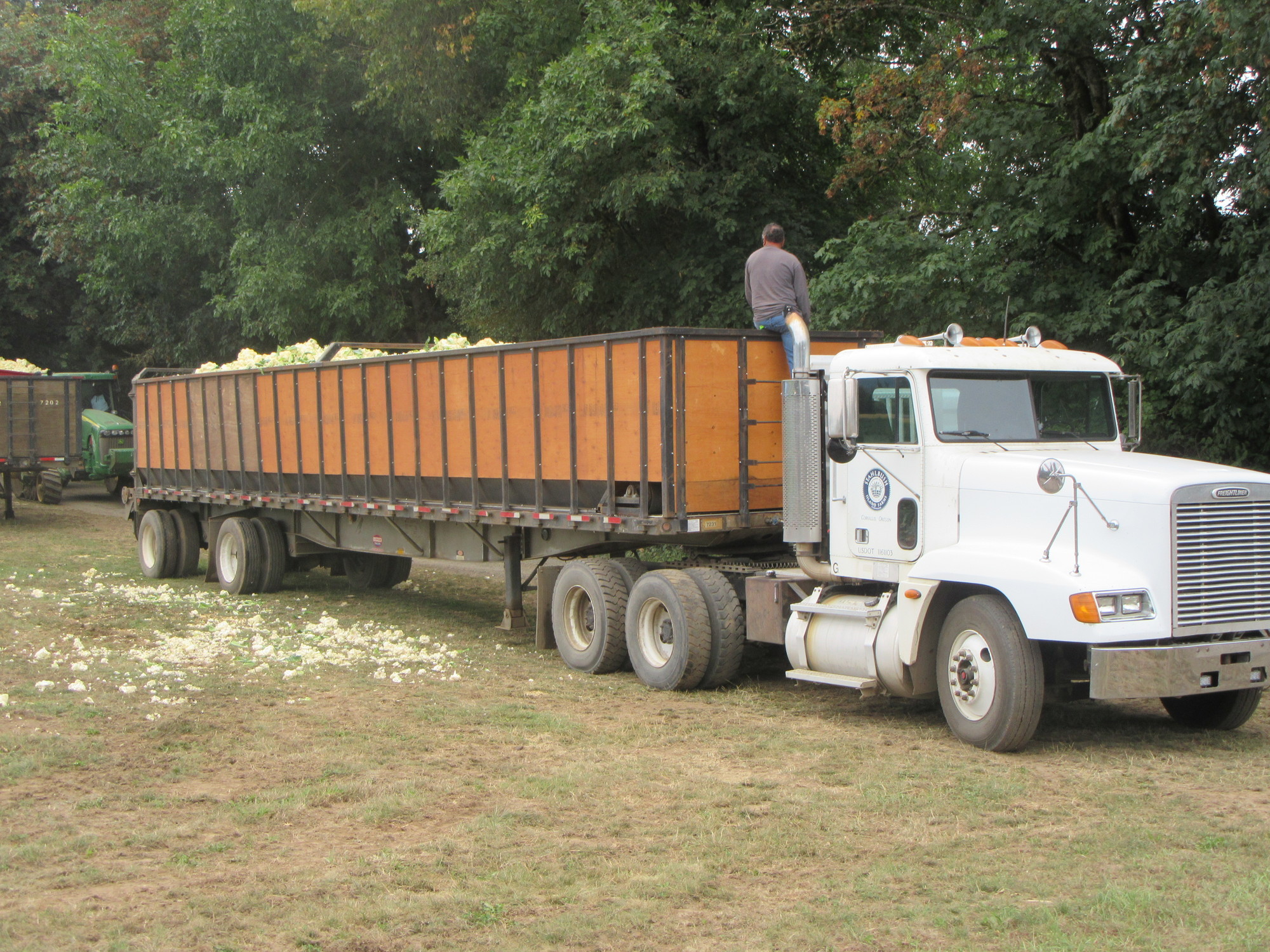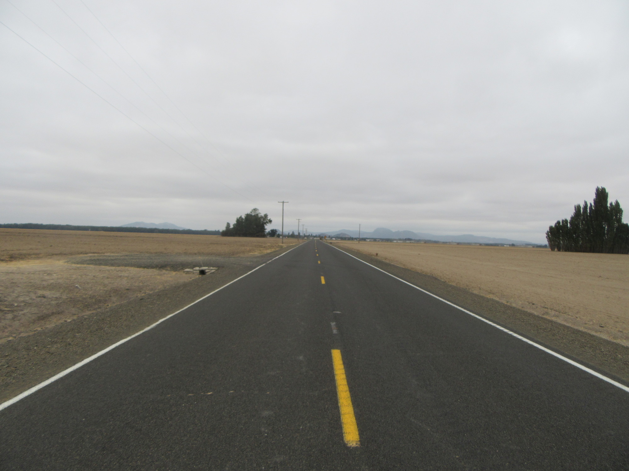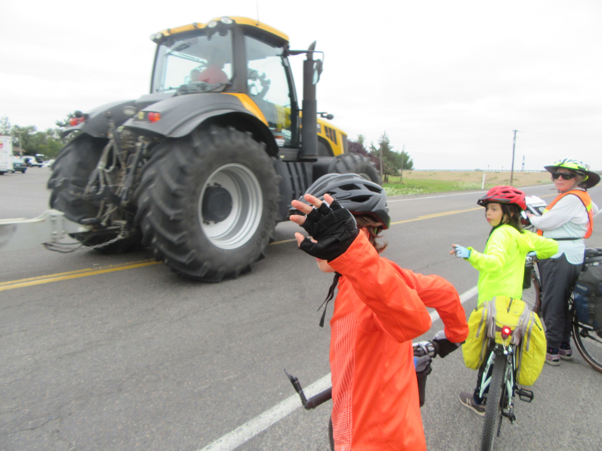 By "Halsey" I really mean an exit off the I-5 somewhere near whatever Halsey is. It's a busy intersection, and we had to wait a long time for our chance to run across. The tractor in the photo is not really representative, it was more semi-trailers that we were dodging.