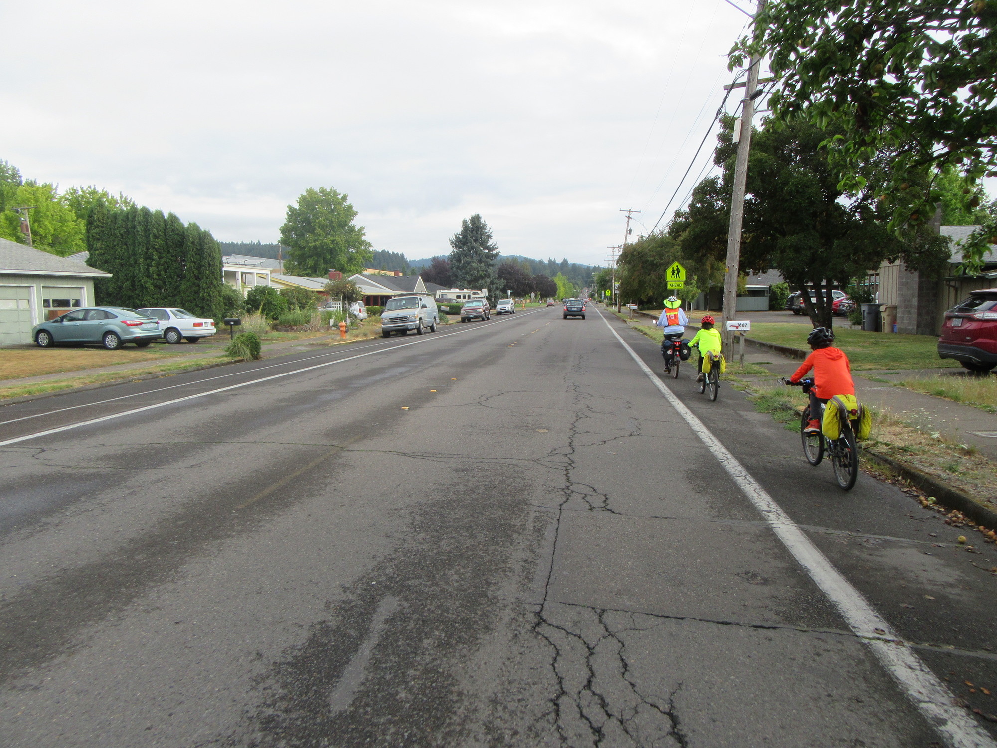 Going to the Broken Yolk meant that Dodie could have a peek at downtown Corvallis, as we made our way North and out. We appreciated the bike lanes that the town is known for, as well as the pleasant suburban houses and gardens.