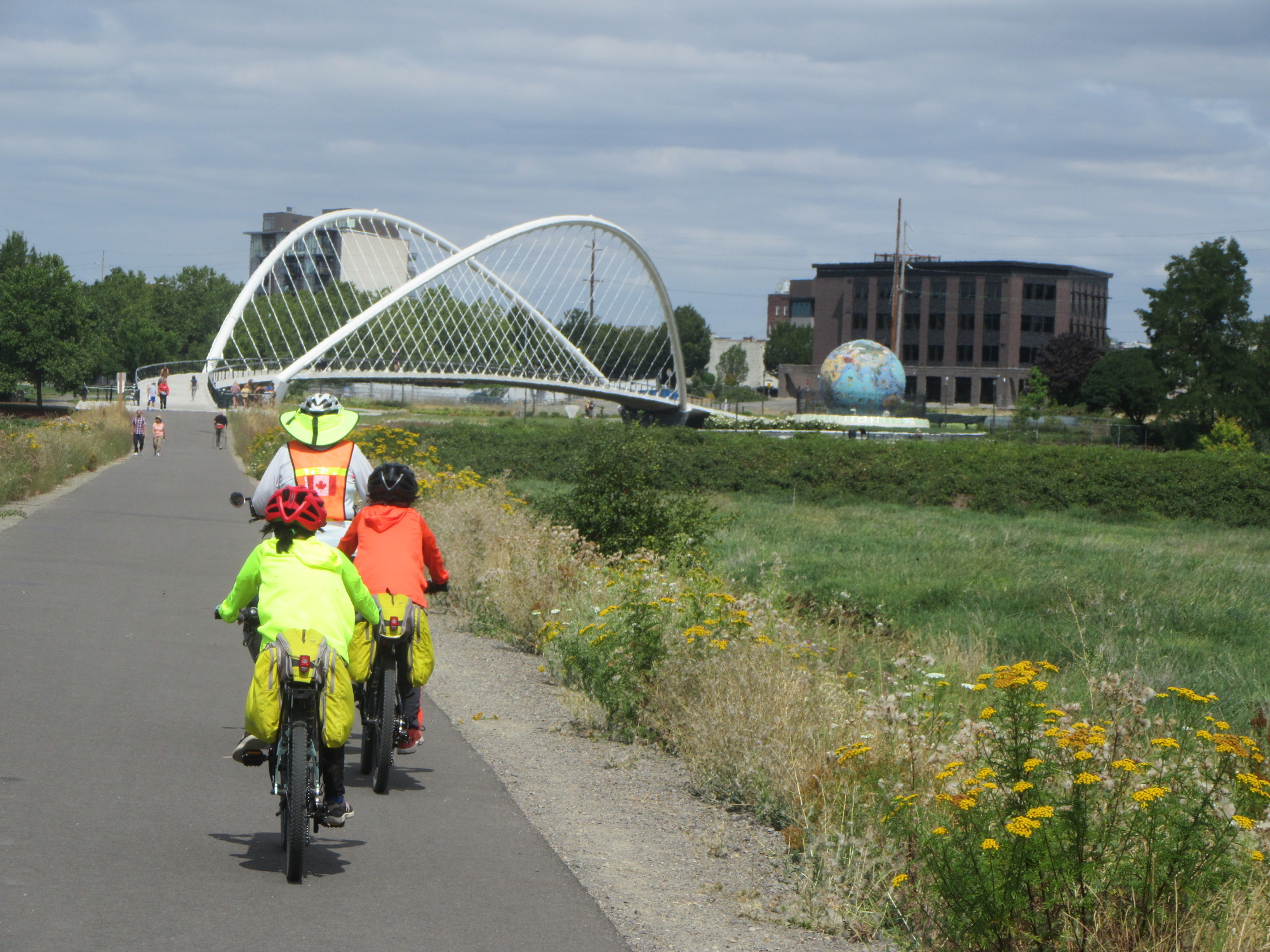 After the ferry is was again paved shoulder and fast-ish traffic, until we could cut over to the Minto-Brown Park. It was a real pleasure being on car free paths for the length of the park, and then crossing to Salem on a rather elegant passerelle.