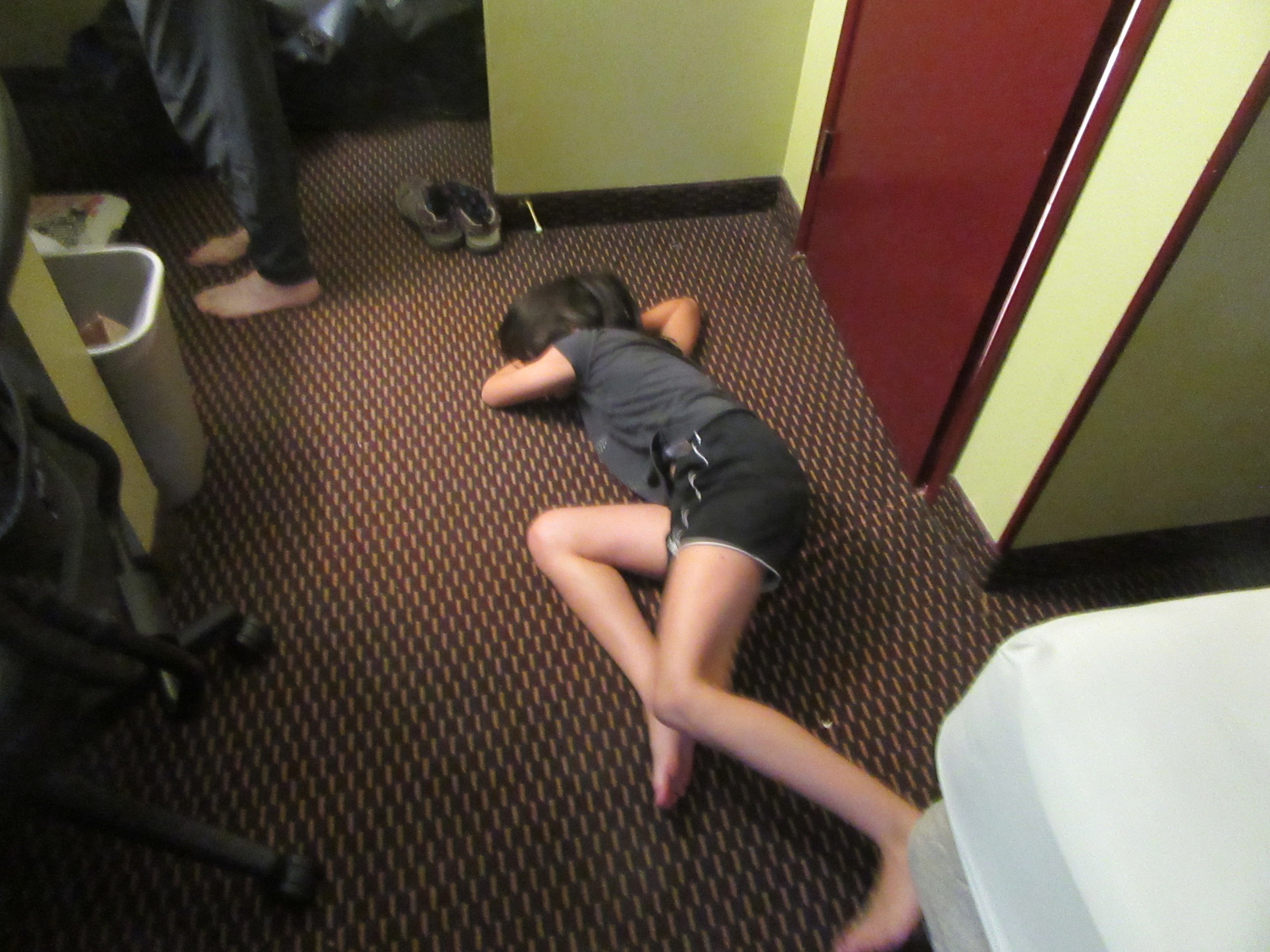 The kids were hoping for another pool, once we would reach the Quality Suites, but though they had one, it was closed for renovations. As I write this, they have spent the last two hours instead in bed, watching PBS (television). Soon we will walk out and see about finding something reasonably healthful for supper.