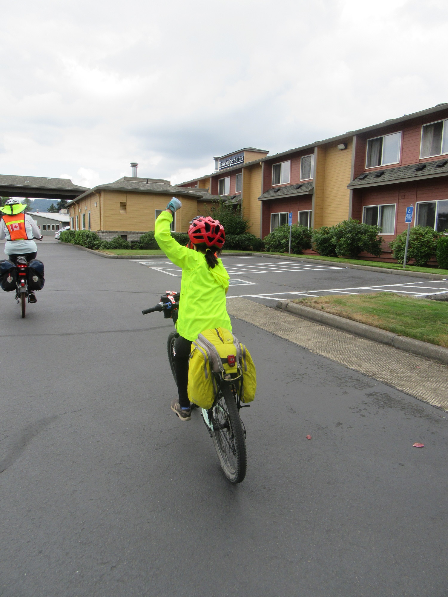 When finally we rolled into the parking lot of our now "good old" Travelodge, Violet raised an arm in triumph. I am not sure if this was in satisfaction over 475 km cycled, or if it reflected the knowledge that hours of pool time lay ahead. No matter, it was a good trip.