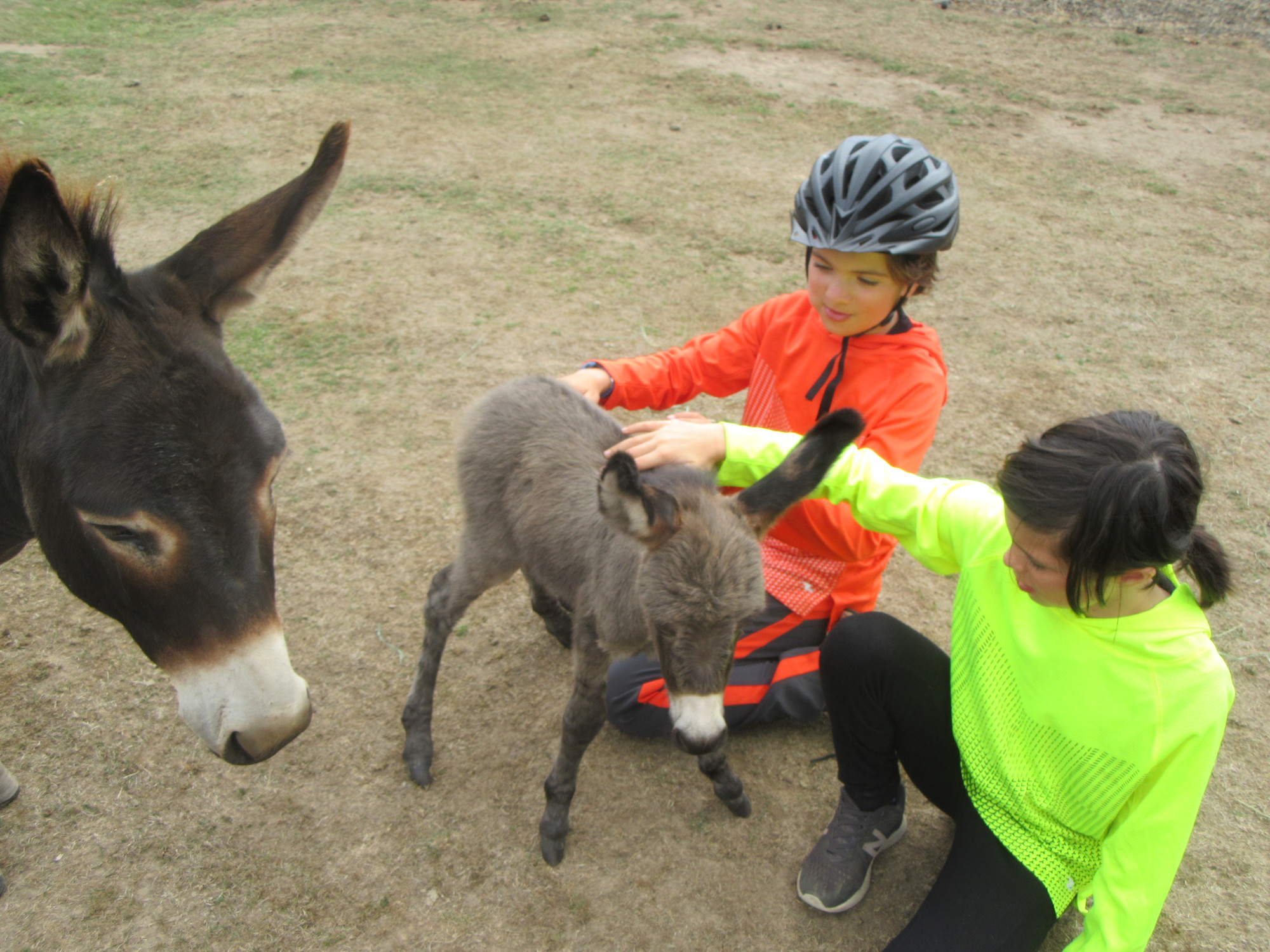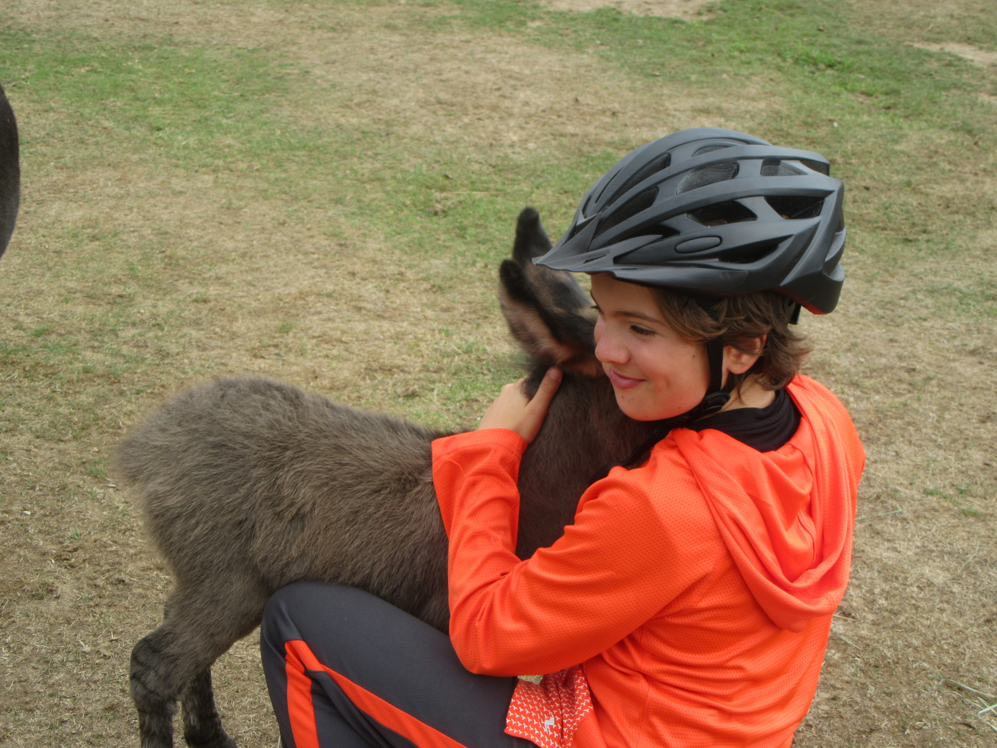 We learned that the baby was just two days old, which accounts for why we had not seen her when we first passed by. Unlike the first baby, who it was said was learning to be "stand offish" from her mother, the new baby - Charlotte - was all cuddles, and enjoyed walking between people's legs.