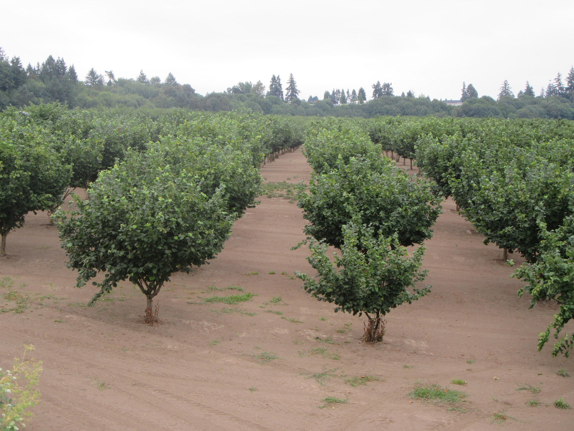 Even the large looking plantations we see here do not produce enough for demand, and growers are always encouraged to expand. A goal is to be large enough to be a supplier for the likes of Hershey's chocolate. The hazelnuts themselves are so called to make it clearer to consumers that they are nuts. "Filberts" apparently do not resonate. Also, harvest here is in October, not at all near the feast day of the French St. Philbert, which falls on August 20th.