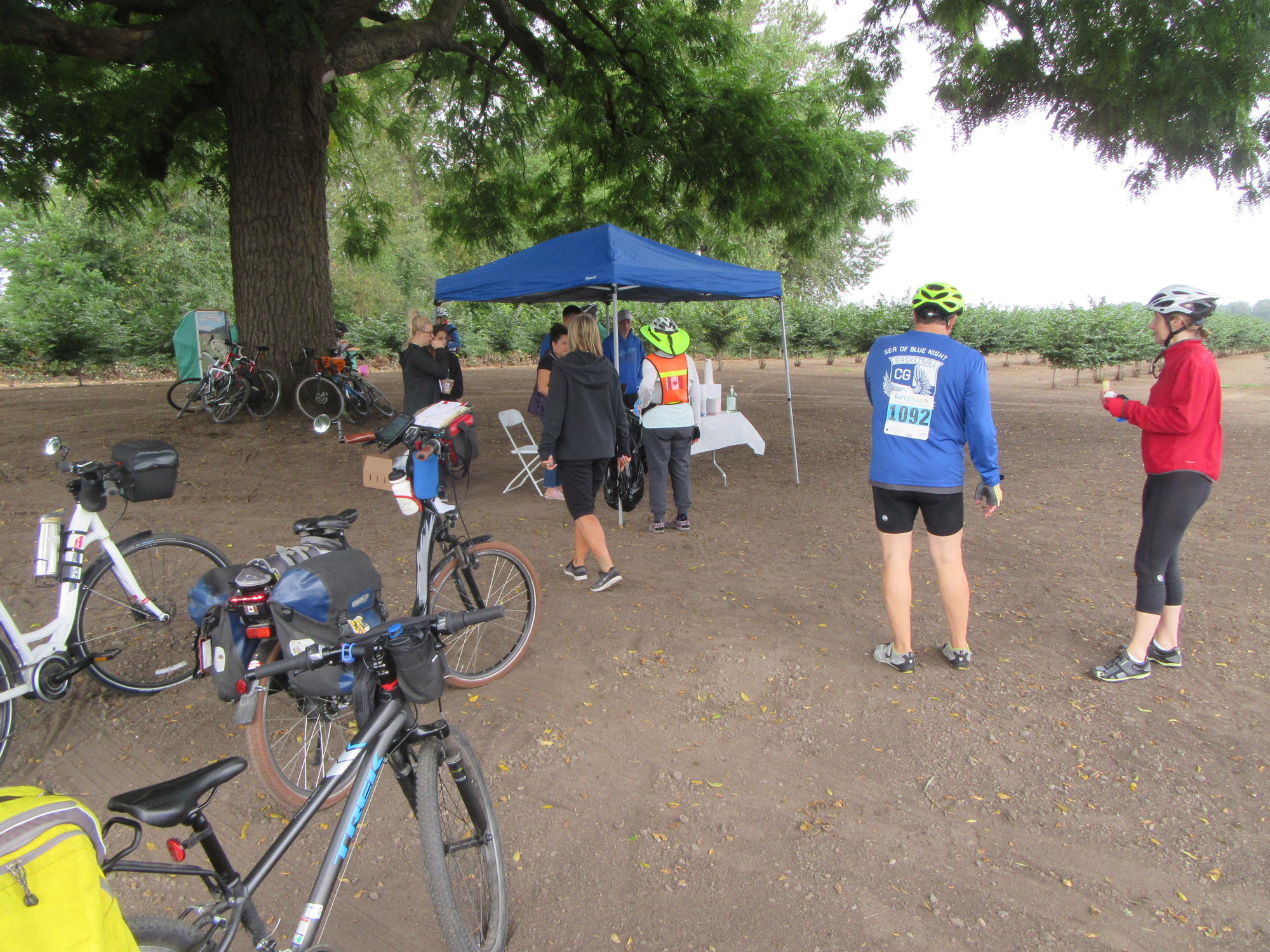 We stopped to say hi at one of their support stations, and maybe could have gotten some donuts, but actually we already had lots of donuts. All along our route, though, we got to wave to riders. It was not a race, so many were dawdling along, same as us.