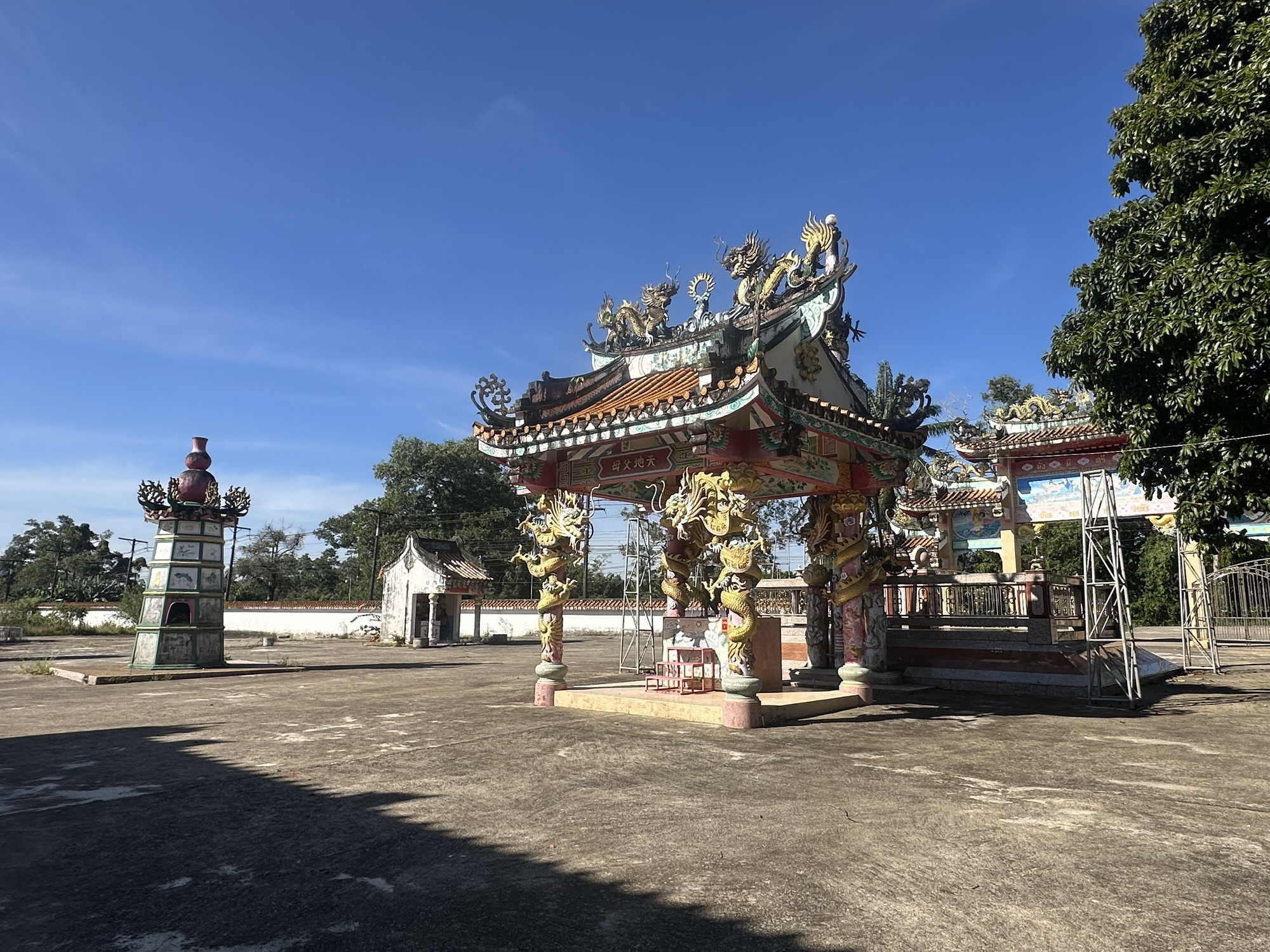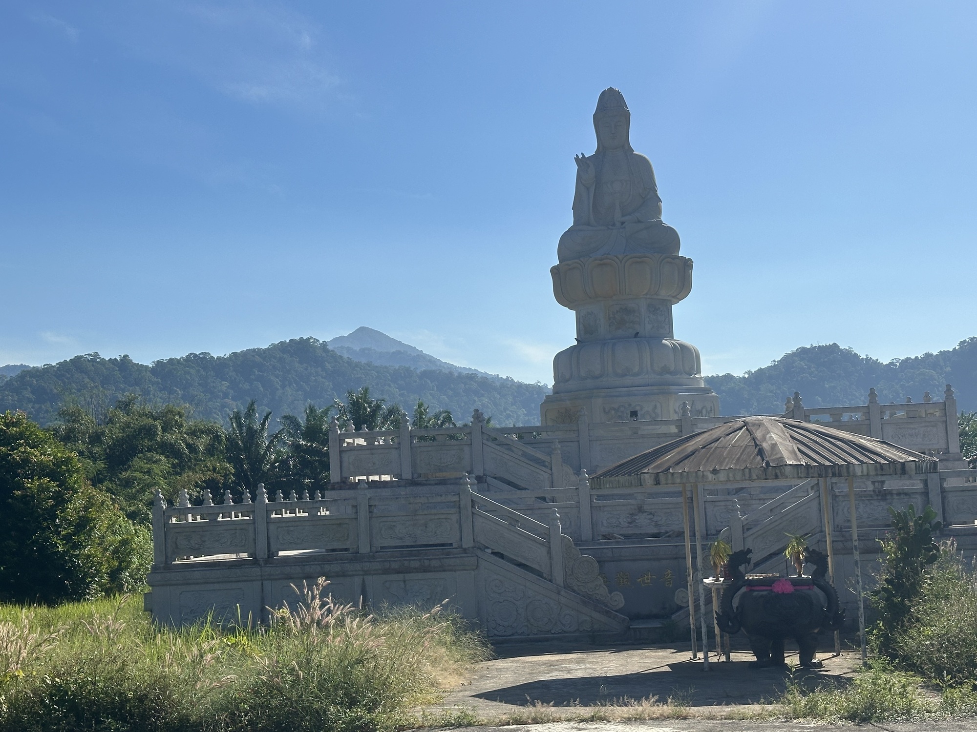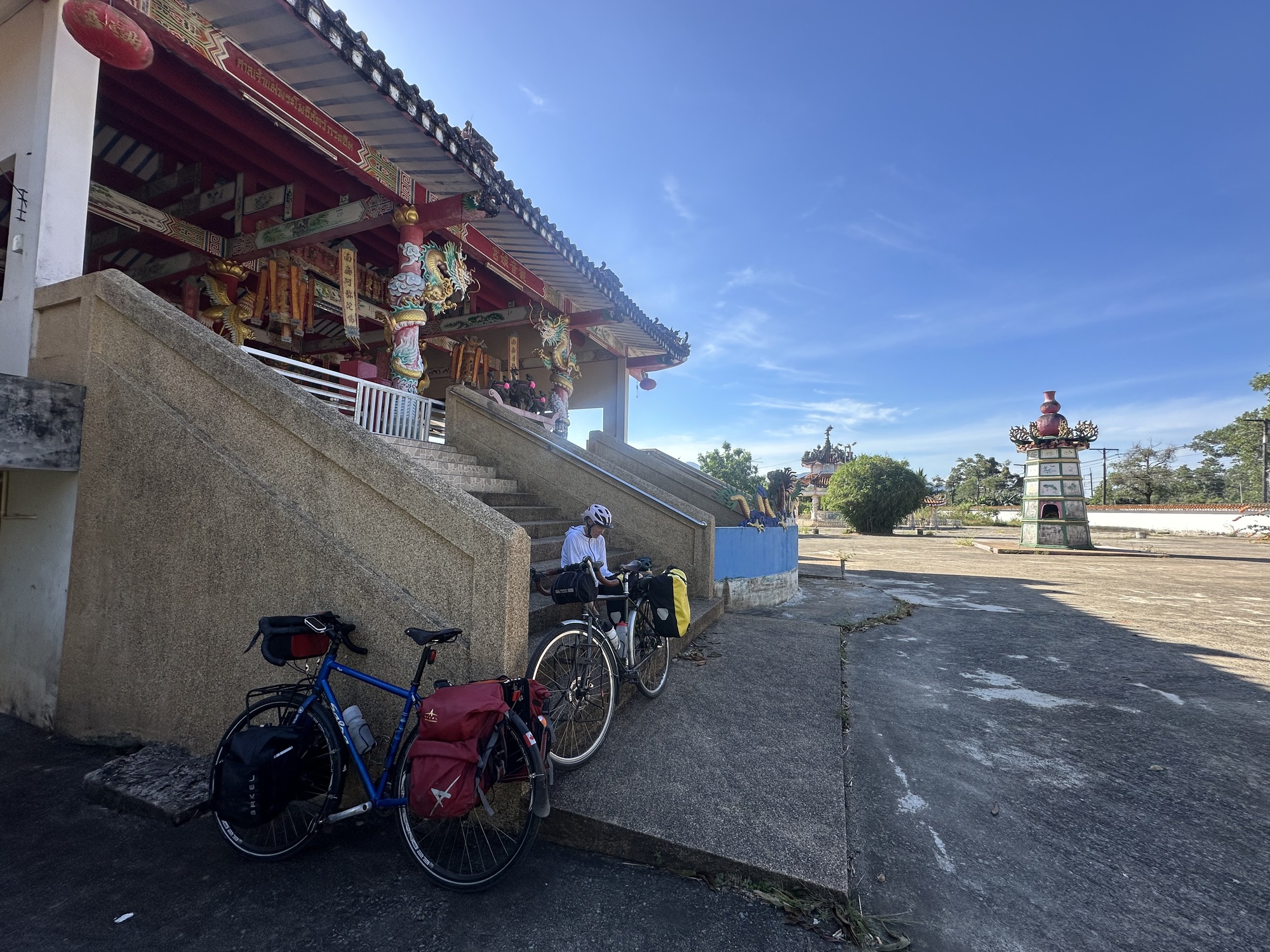 We managed an early start, so the first few hours were relatively easy. We stopped at a very Chinese-looking temple about mid-morning for a look around but it was completely paved and mostly shadeless and radiating heat — not a spot to linger long.