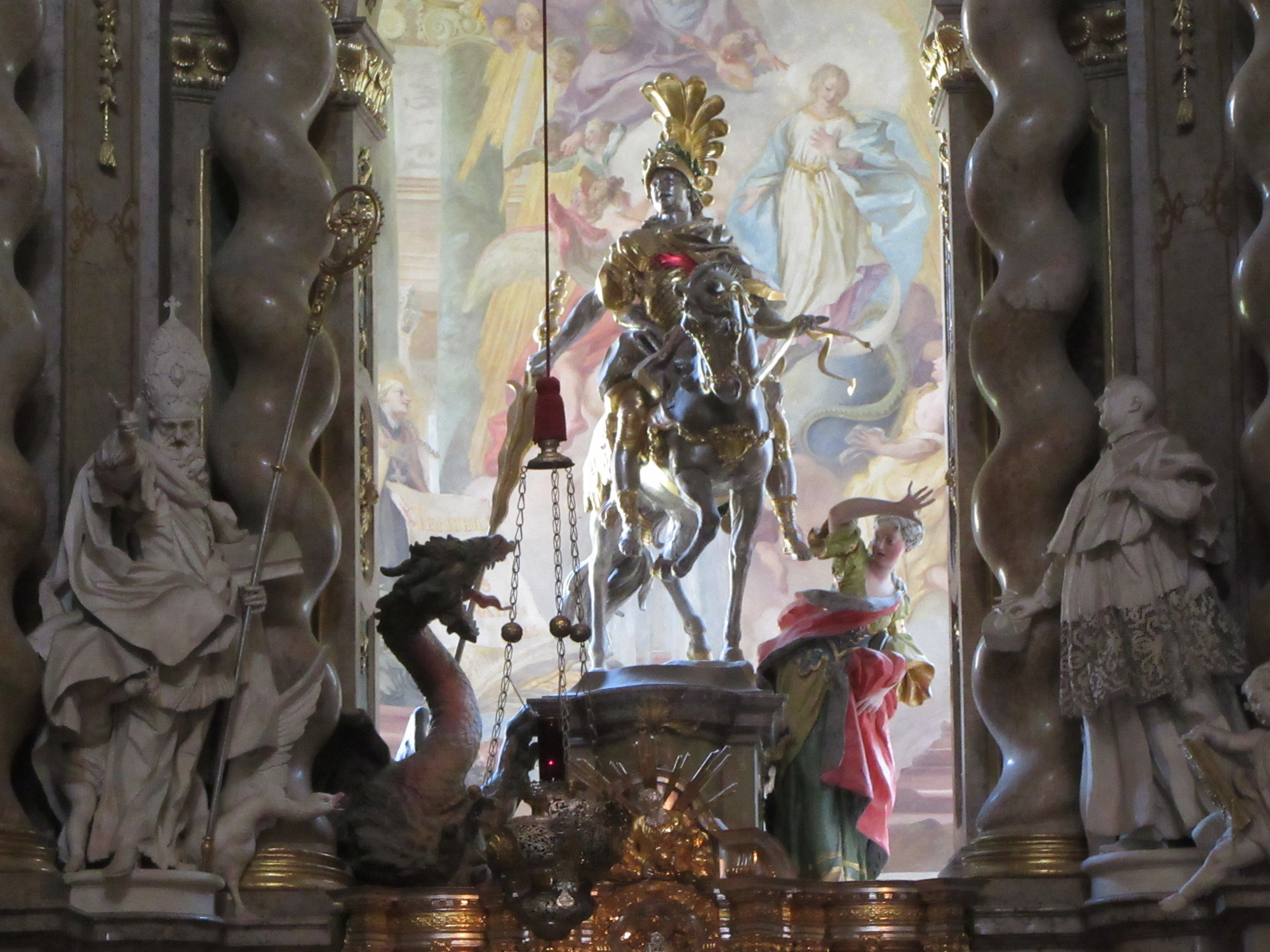 Let's start with the monastery part. We liked this one, especially as it comes before Scott and Rachel are able to come up with any further zippy Italian churches. Here we found a kind of great 3D George and Dragon diorama at the main altar, and even at least one cherub, though it did not seem satisfactorily pink.
