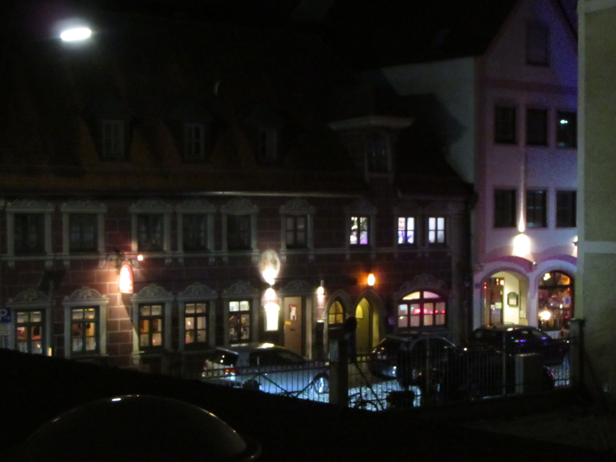 The old streets probably look even more fetching at night, based on this shot from our window, onto a sidestreet. Even though all you see in the shot is a steak house it still looks really nice.
