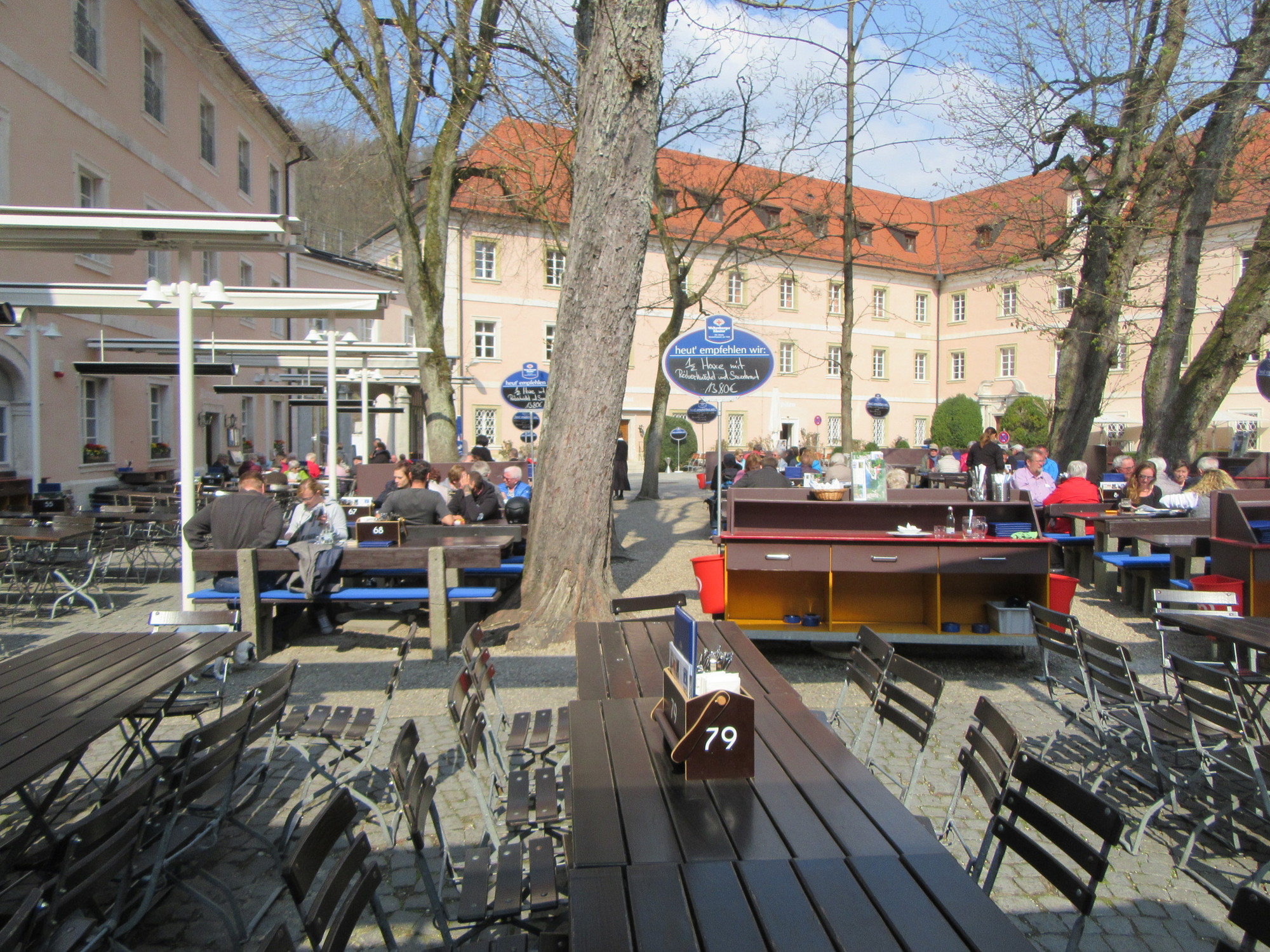 The Weltenberg monastery is kind of schizophrenic. On the one hand it is a Benedictine monastery, and to prove it we saw one monk riding away on a bike (maybe his shift was over?). But if you look at their website and the grounds, you see that their biggest thing is being the oldest monastery brewery in the world.