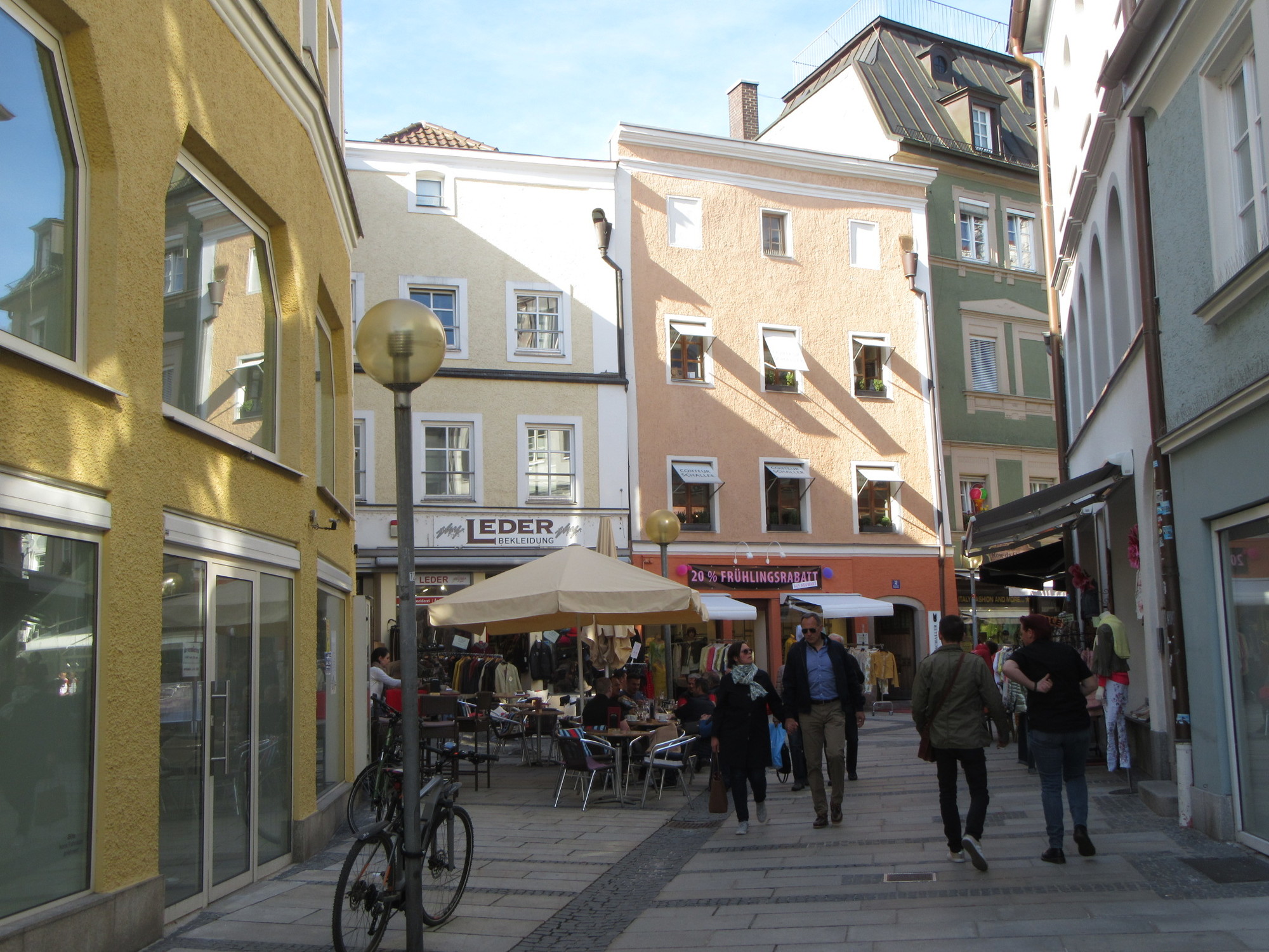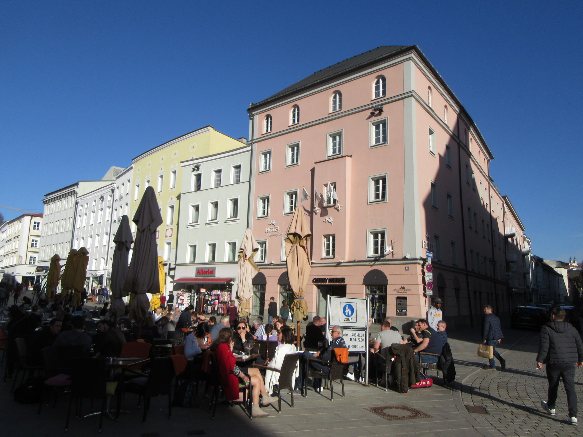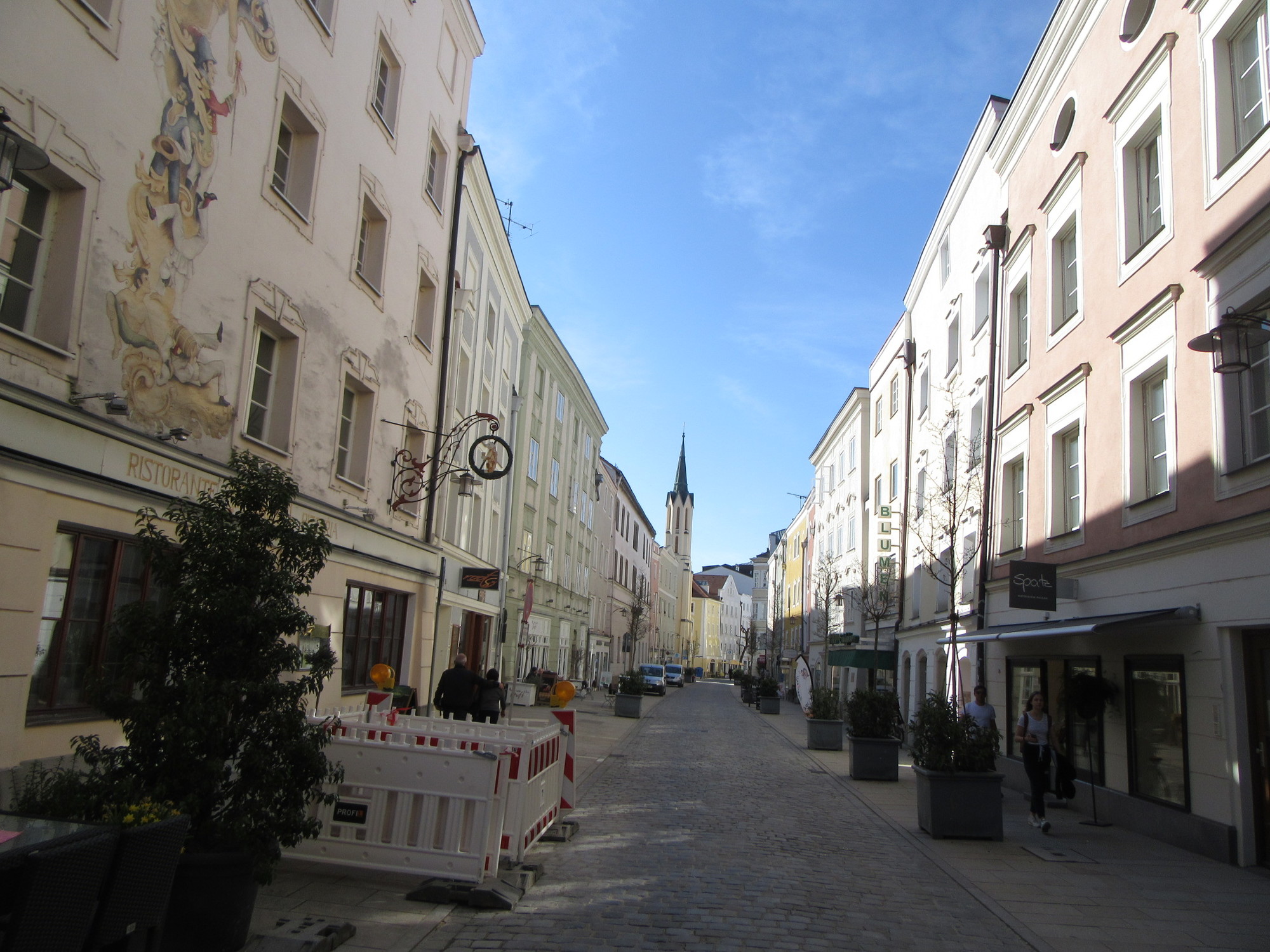 Things did not really liven up until we reached our hotel, which is 1/2km from the Cathedral. By the hotel, we did at least have a lively cafe type street scene. Our hotel is called the Weiser Hase - the White Hare - which is a great name, and one we didn't include in our list of typical animal and fruit based hotel names.