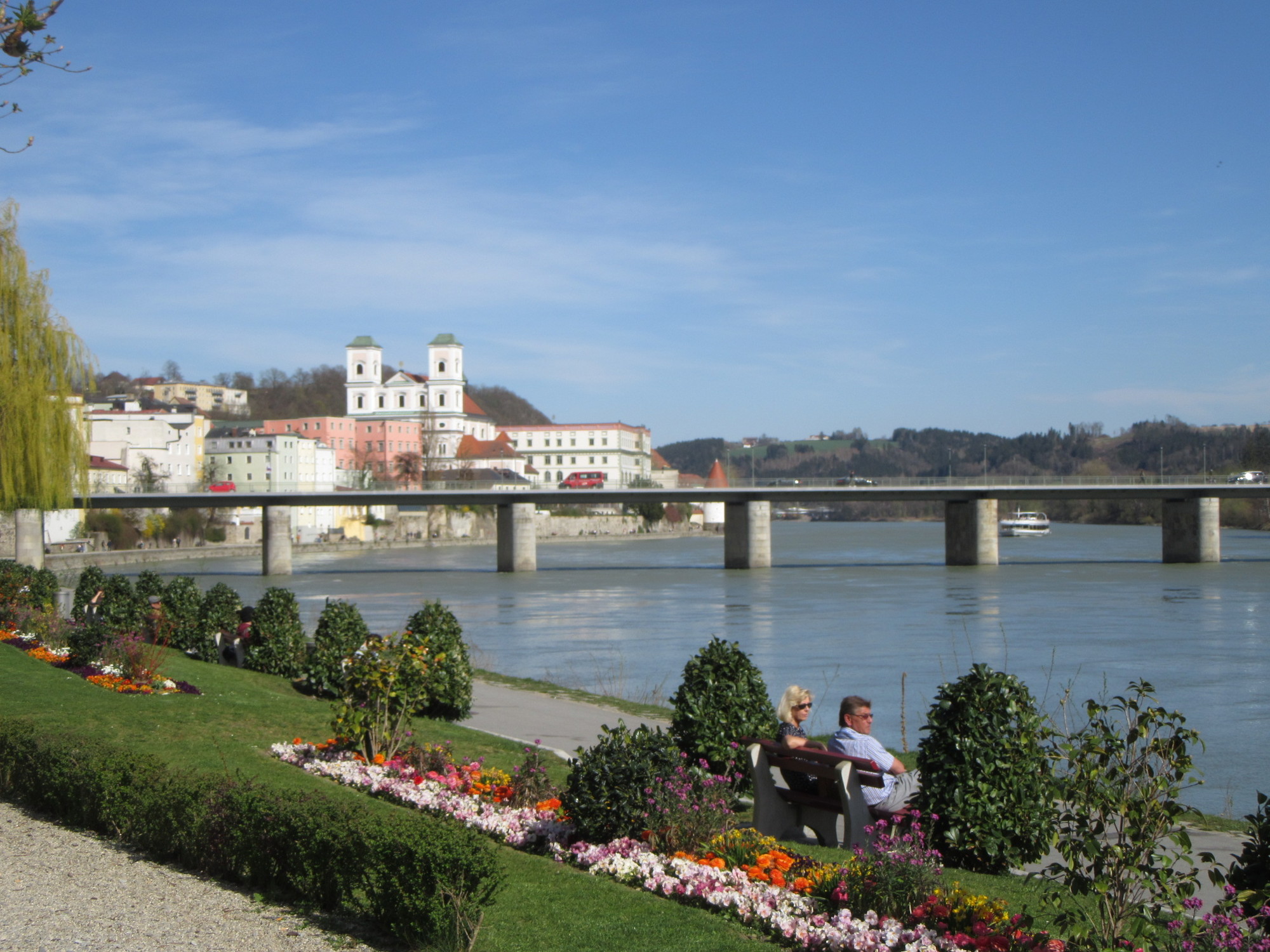 Passau is at the junction of the Donau with the large Inn and the smaller river Ilz. We came out at one point, along the Inn, and found a very pleasant riverside where people were lying about on the grass.