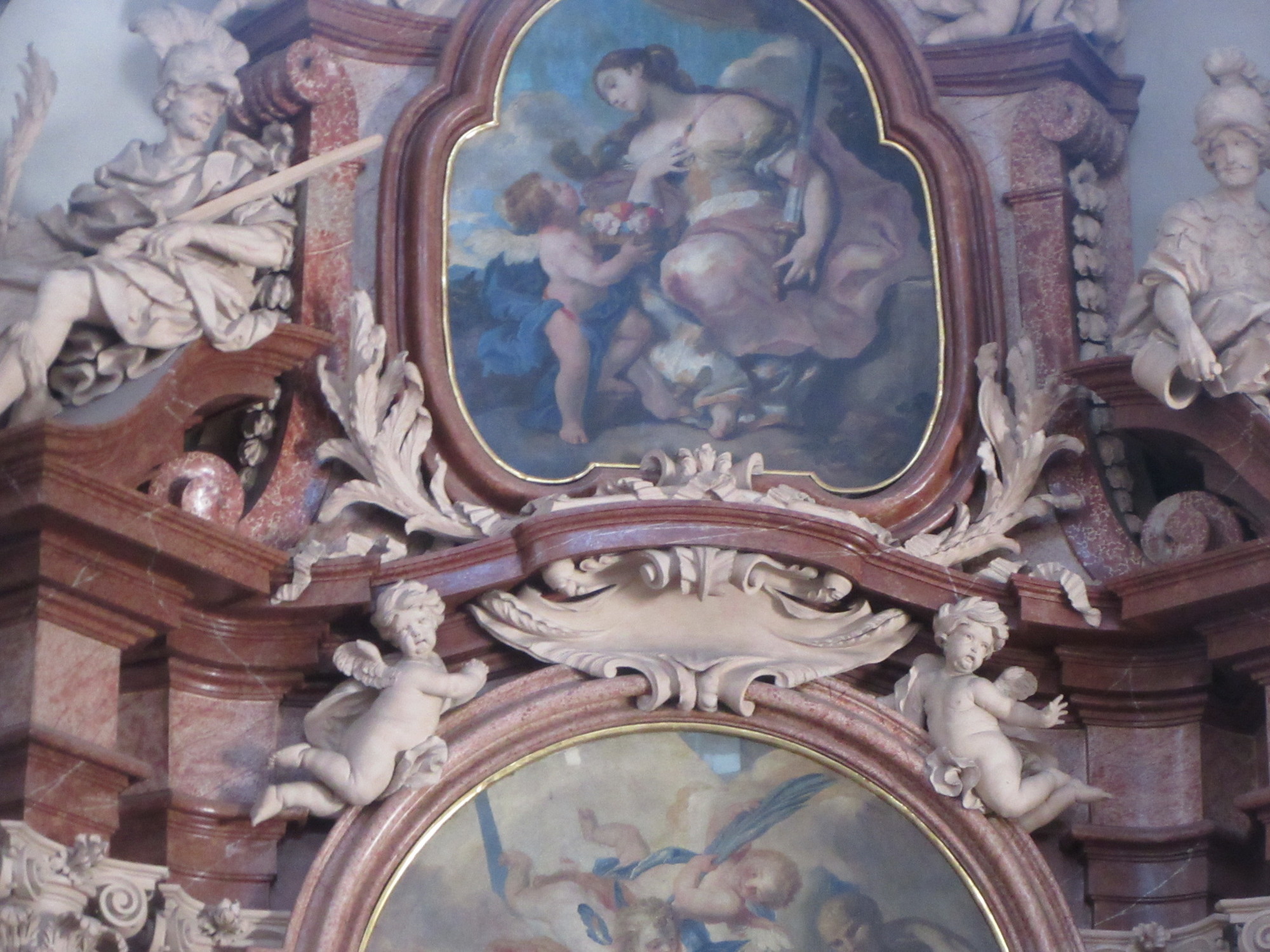 Even with the construction, the beauty of the place was evident, and Dodie keenly pointed out all the cherubs and/or angels holding up the paintings in the side galleries.