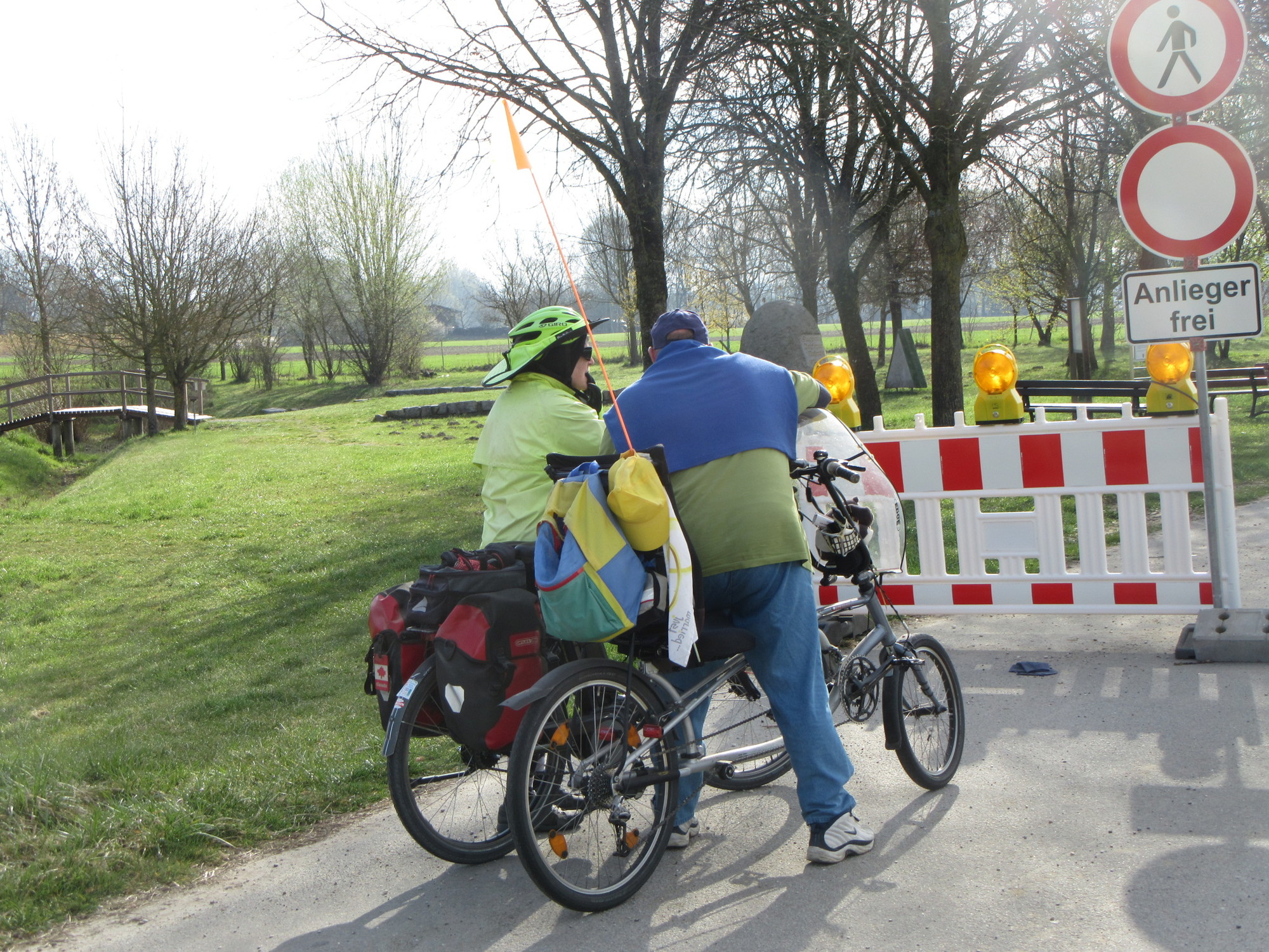 A little more serious for us was when we ran into a detour on the radweg. It is always a tossup about whether to believe that the way is truly blocked, and if you take the detour, you are relying on whoever dug up the route to not drop you in the forest somewhere. If I have time tonight I will map the detour against the original route, and see if objectively it was as much of a problem as it felt like.