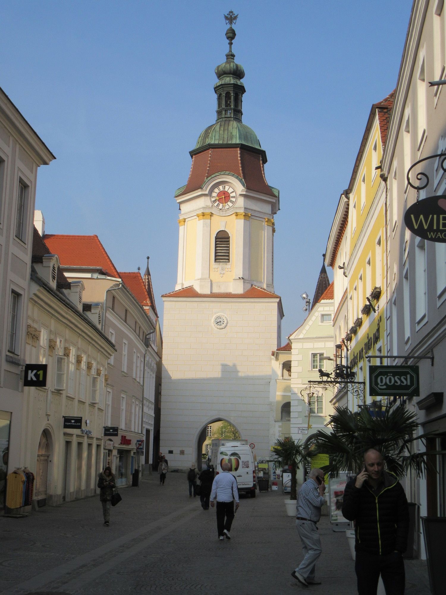 There is no distance between the towns of Stein and Krems, so when we entered Krems and looked back, we were looking at the Steiner gate. We had stopped, on the main Krems walking street, to find some postcards to send to grandkids from Austria. This would give us the chore of finding some Austrian stamps and mailing, before leaving the country - Friday.