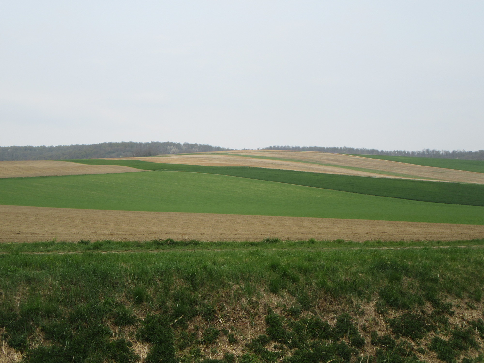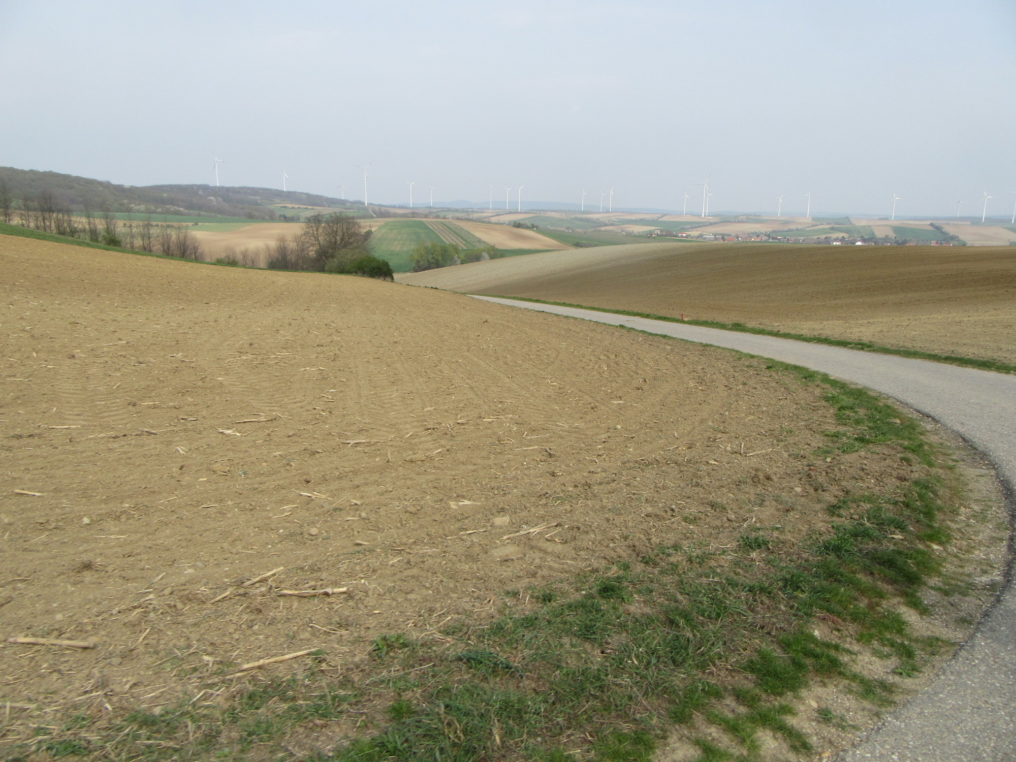 The weather had given up most pretense of being Spring, so we had 10 degrees and a very stiff and cold wind in our faces. We entered a landscape which for the few of you that know southeastern Washington State, was much like the Palouse region. That is, it had large rounded hills, covered with crops or tilled fields, sometimes giving a layered or striped appearance. The hills had a lot of wind turbines, something that seemed very reasonable today, given the stiff winds.