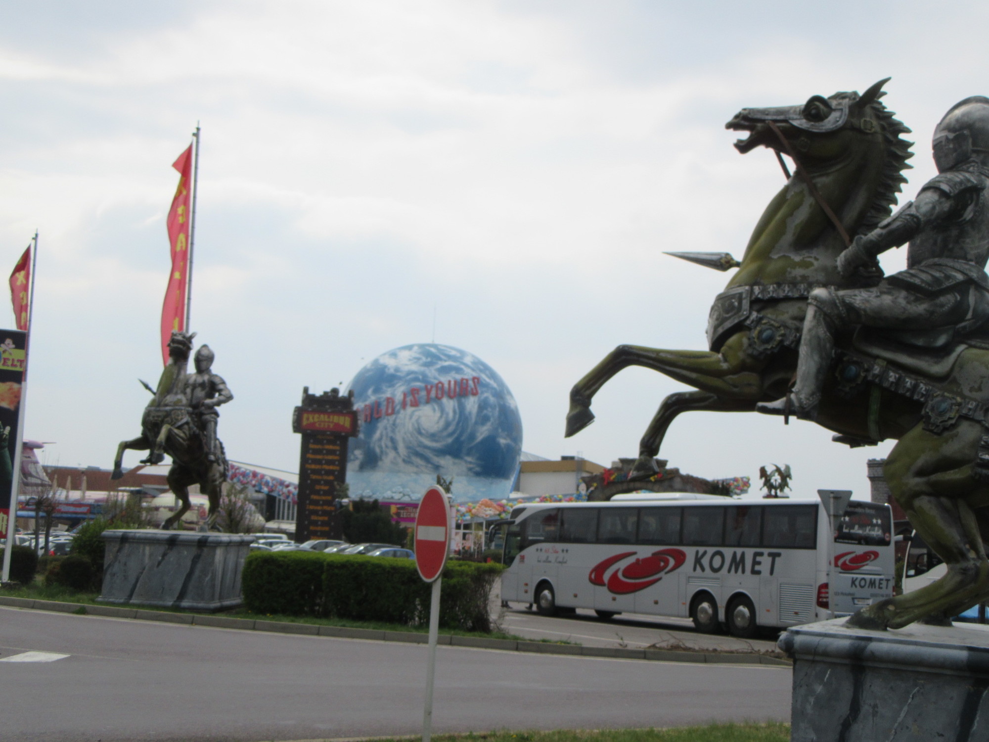 It was more than accurate, it was bizarre. We came next to some sort of giant globe of the world, statues of mounted knights, and even a sort of parked jet aircraft. Have a look: