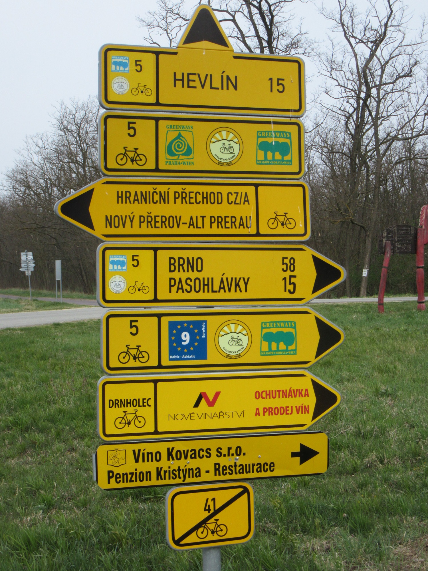 As we set off from Mikulov on the Greenway/Iron Curtain/EV 13 we felt guilty for dissing the Czech roads yesterday. Here was a smooth and wonderful bike path, allowing us to swoop along toward Hevlin, casually appreciating farm land and little villages as we went.