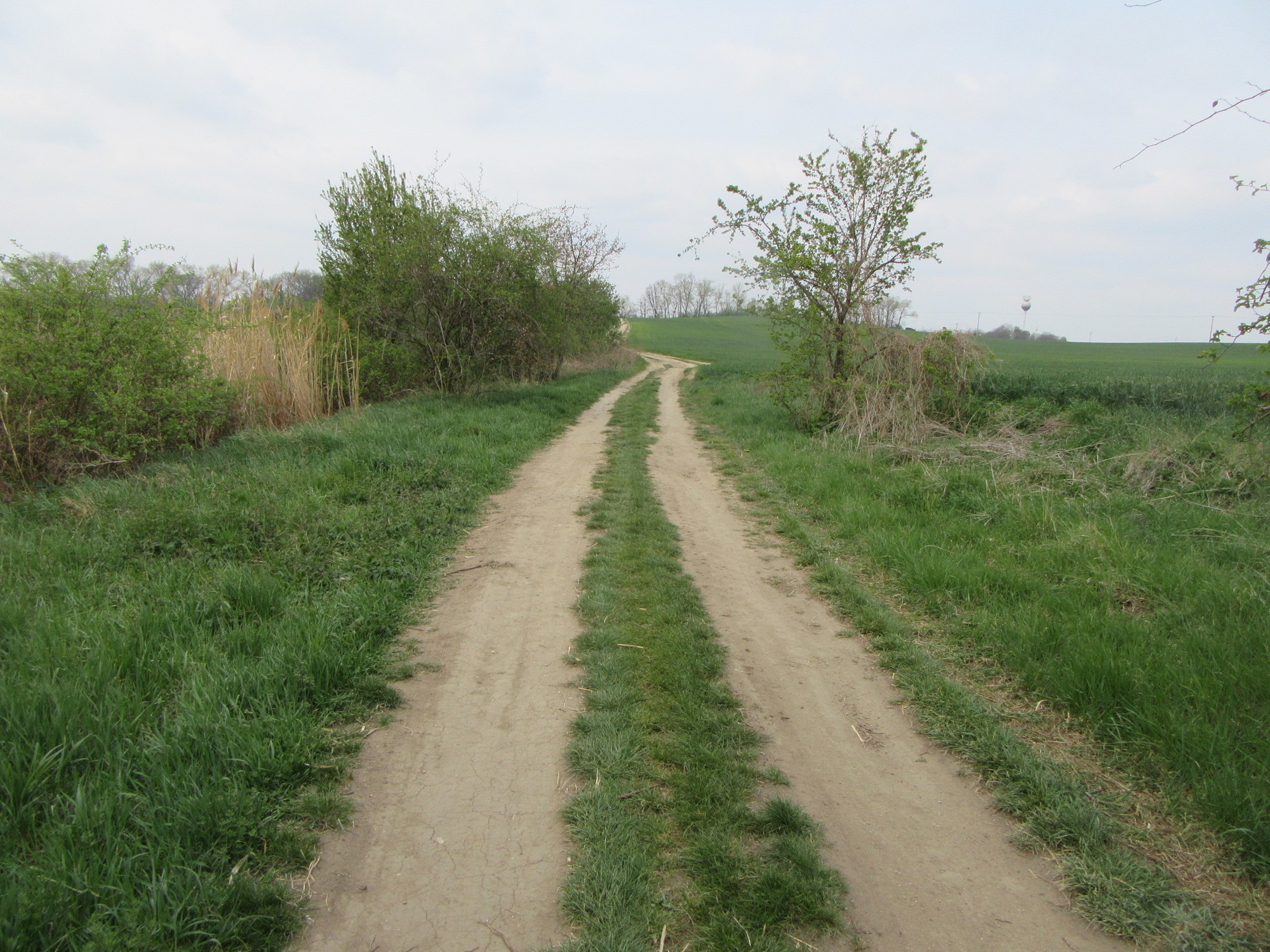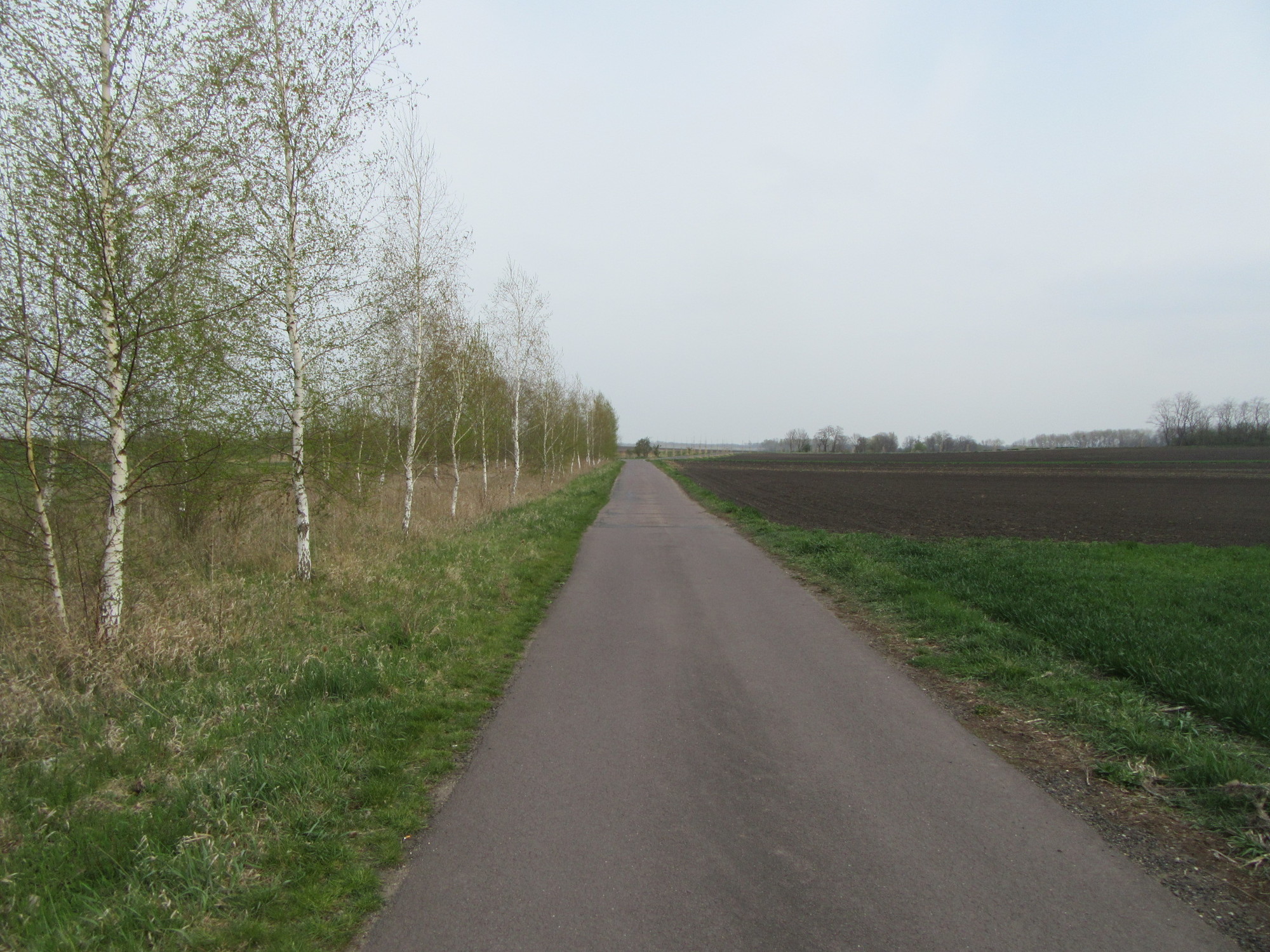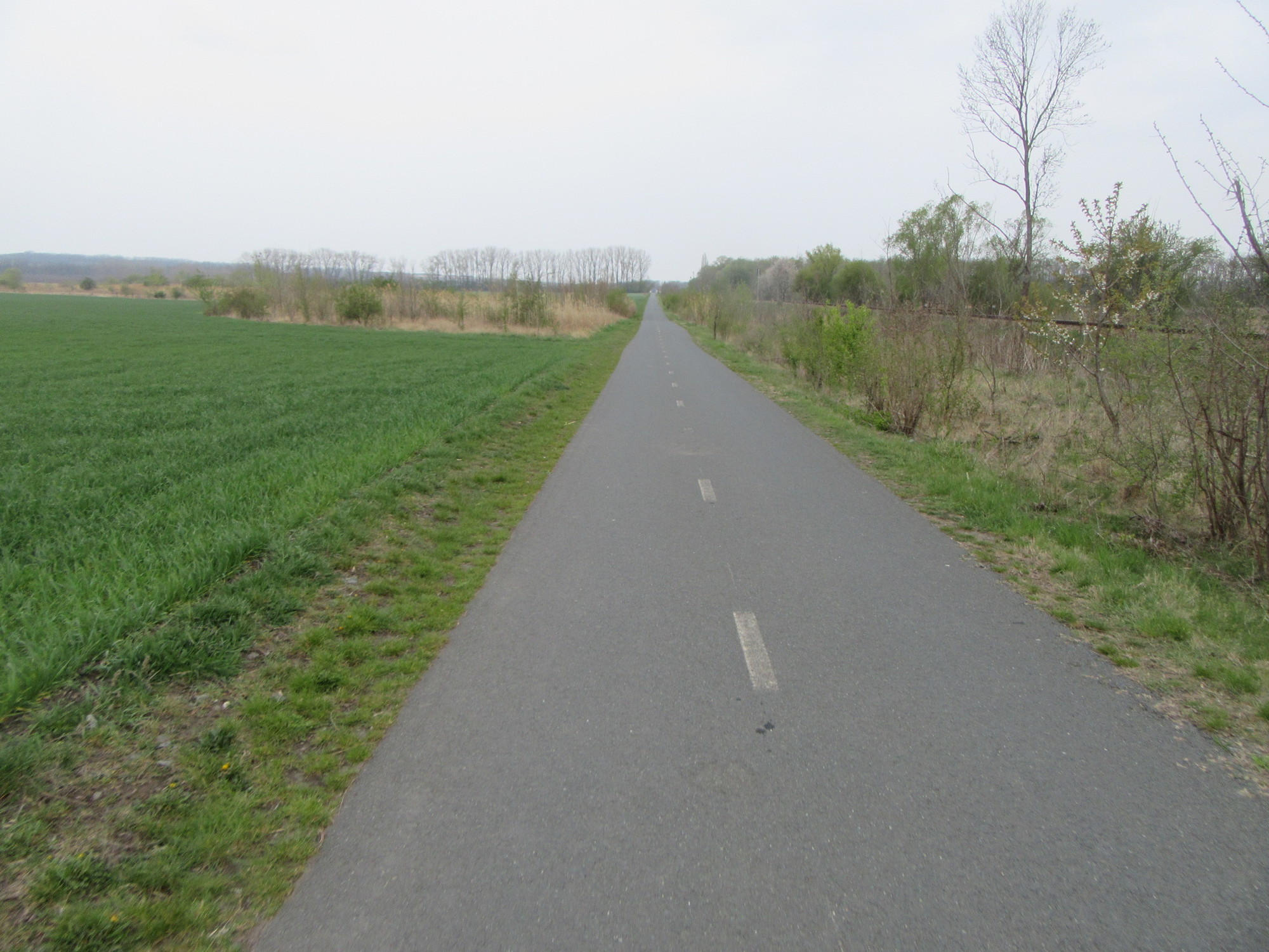 We had to abandon the fantasy of a Greenway bicycle superhighway all the way to Prague, for after Hevlin the path deteriorated. It was still exciting, though, passing through tilled fields in a way that made it feel like a bridge in a sea of earth.