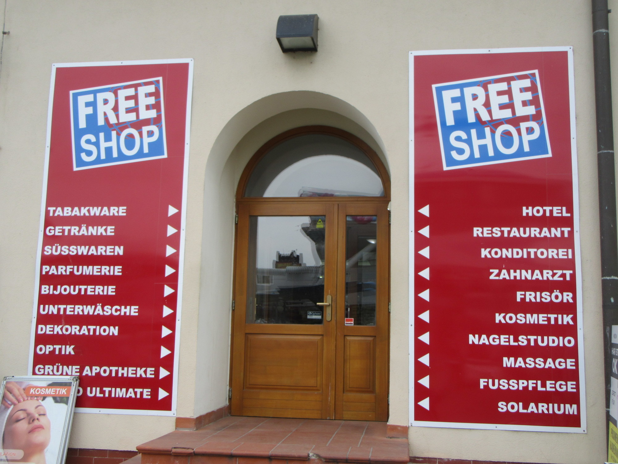 So what is this all about? The location is right on the Austrian border, and obviously there is a tax or some other advantage to shopping here. The thing with the globe and the airplane and the knights is a "shopping centre". We strolled over there after a while.