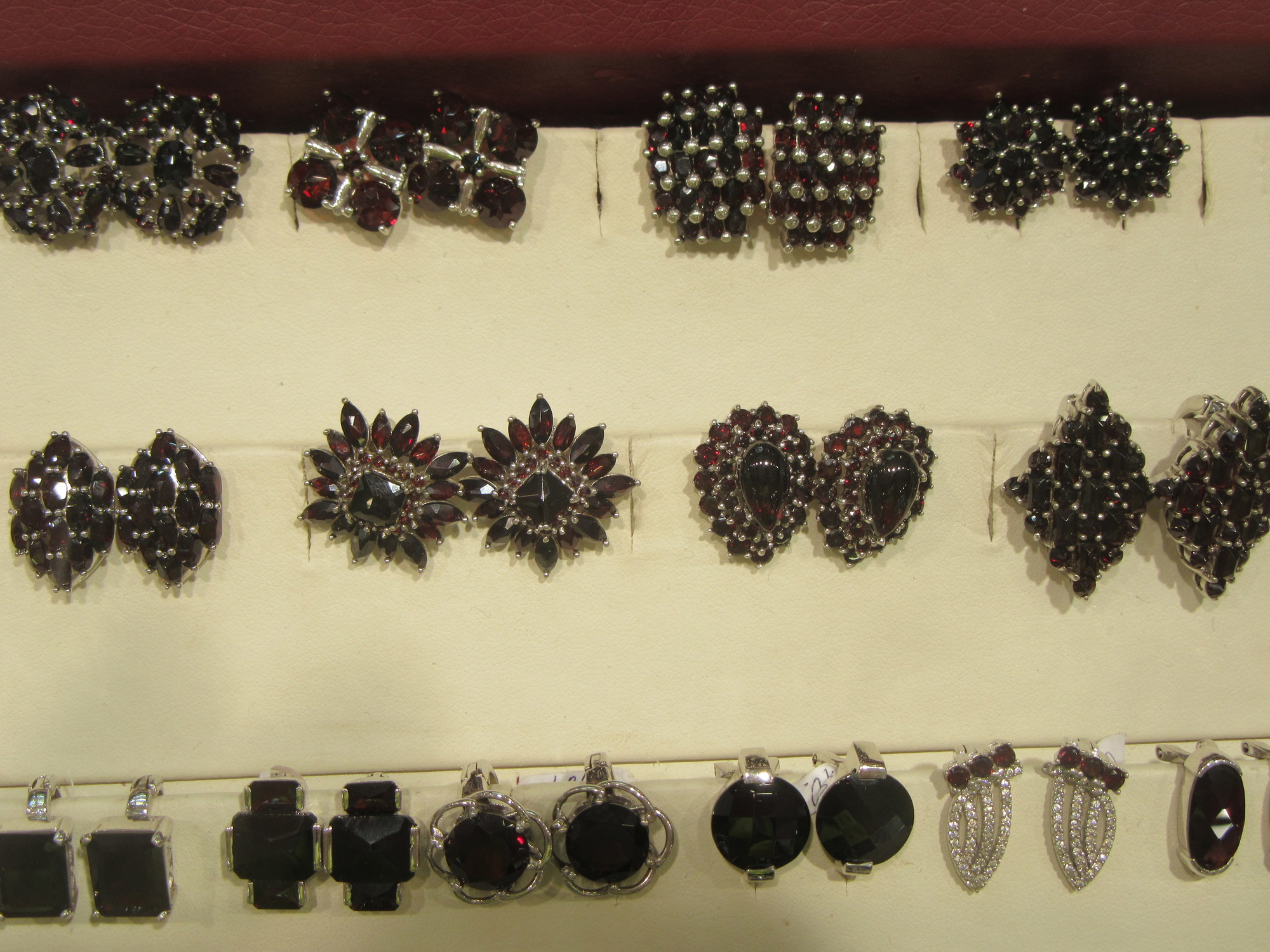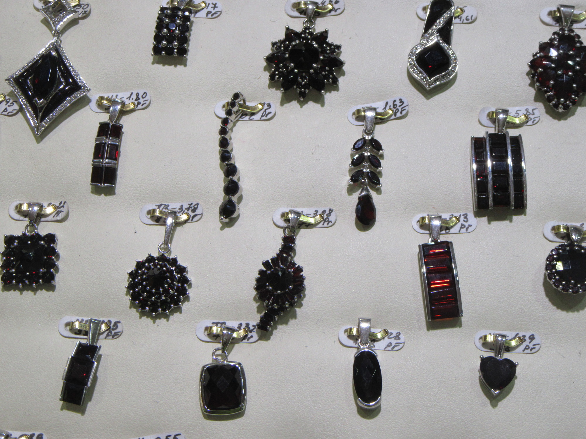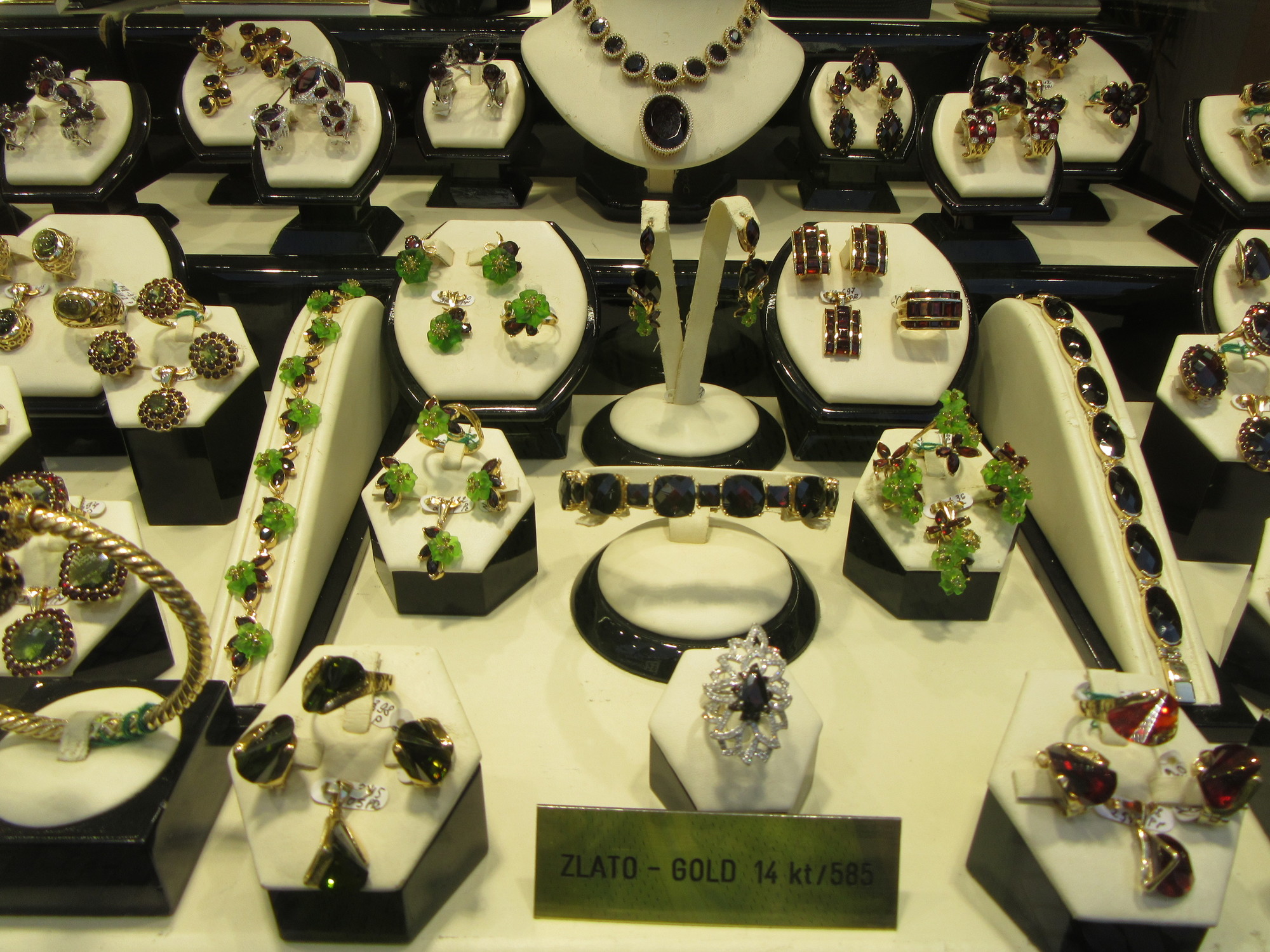 The last souvenir category we'll talk about is the garnets, or granat as it is called here. These often look edible - like pomegranate!, but really together with Bohemian crystal, they are the elegant high end of things one can bring back from here. It's hard to get a good shot, because jewels are normally behind glass, but here is a small hint of just how much garnet is on offer in shops around Prague: