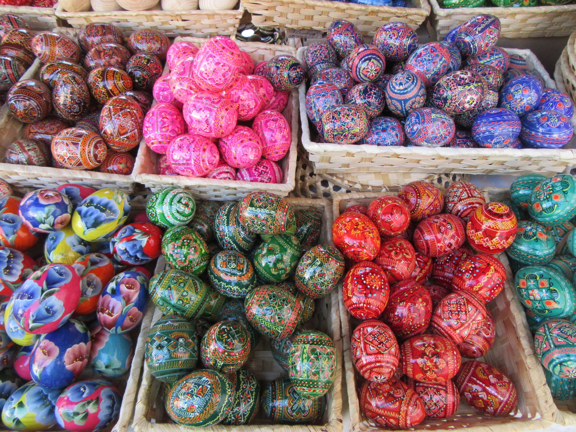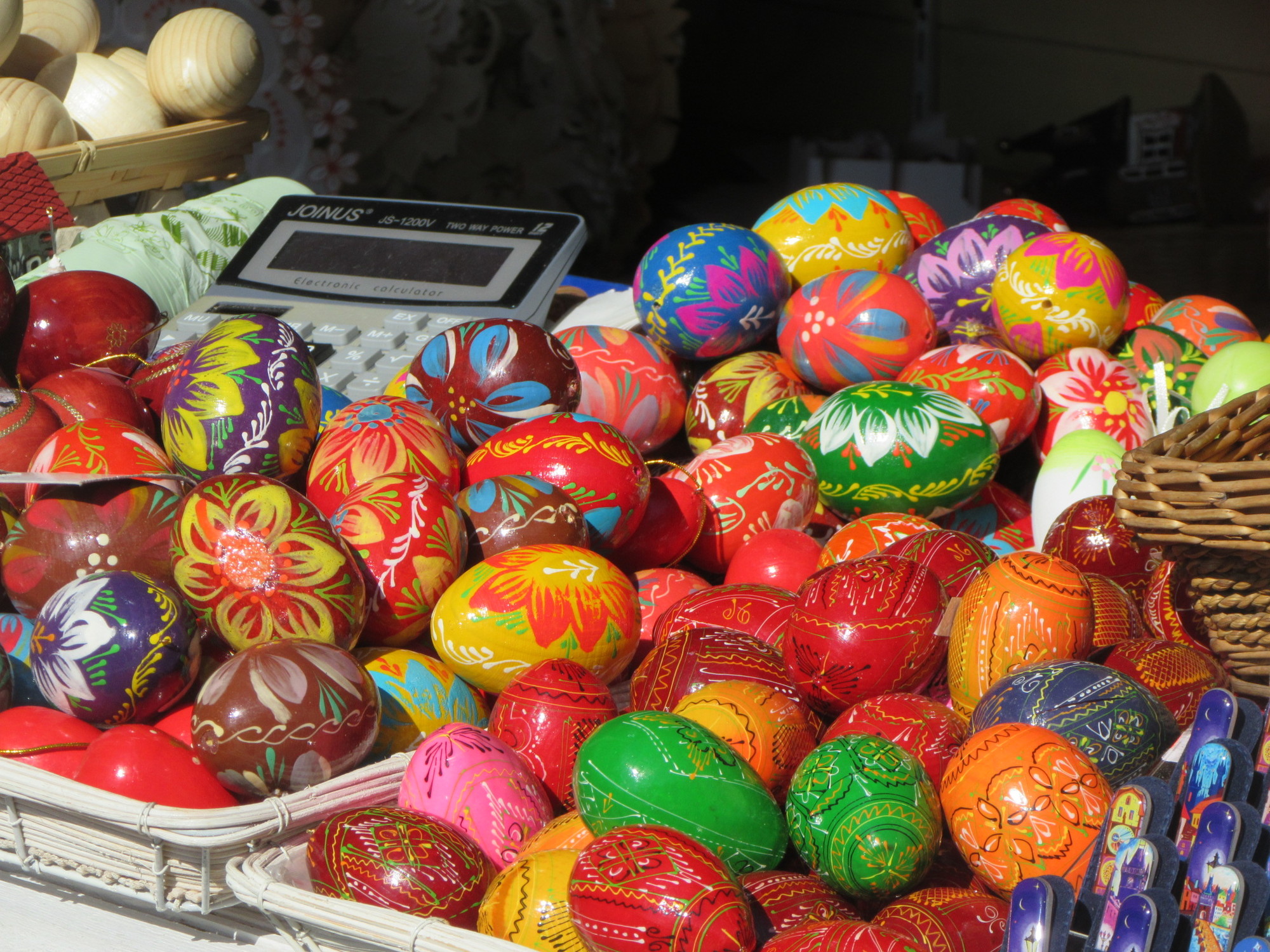 A lot of craft items were on display in the markets, and almost universally they were of high quality. The Asian economies seem to have not penetrated here, so there was little or no evidence of plastic knock offs. At this season, painted eggs are a big thing. They are intricate and hand painted. I asked one vendor whether the designs were somehow appliques, and if not, how could they be so cheap. He assured me that the eggs were hand painted, but as for how come so cheap? - they were done in Ukraine. Go figure.