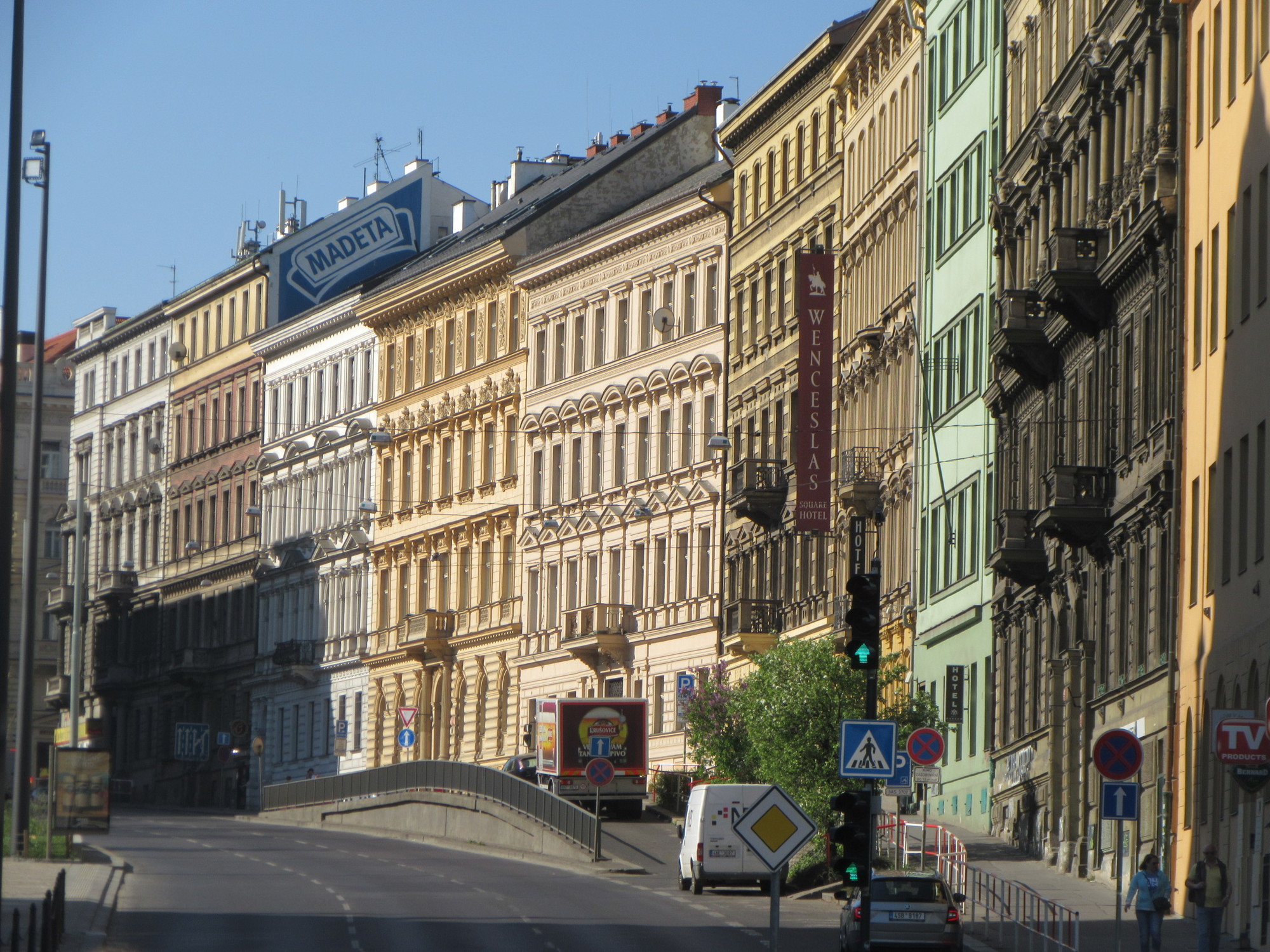 We did not continue across the bridge, to the Little Quarter there, the Castle, or the monastery. Next time! So now we'll more or less retrace the route, back to the hotel. But on the way down here, and on the way back, there has been tons of architecture, food and other stuff. Let's have a look: