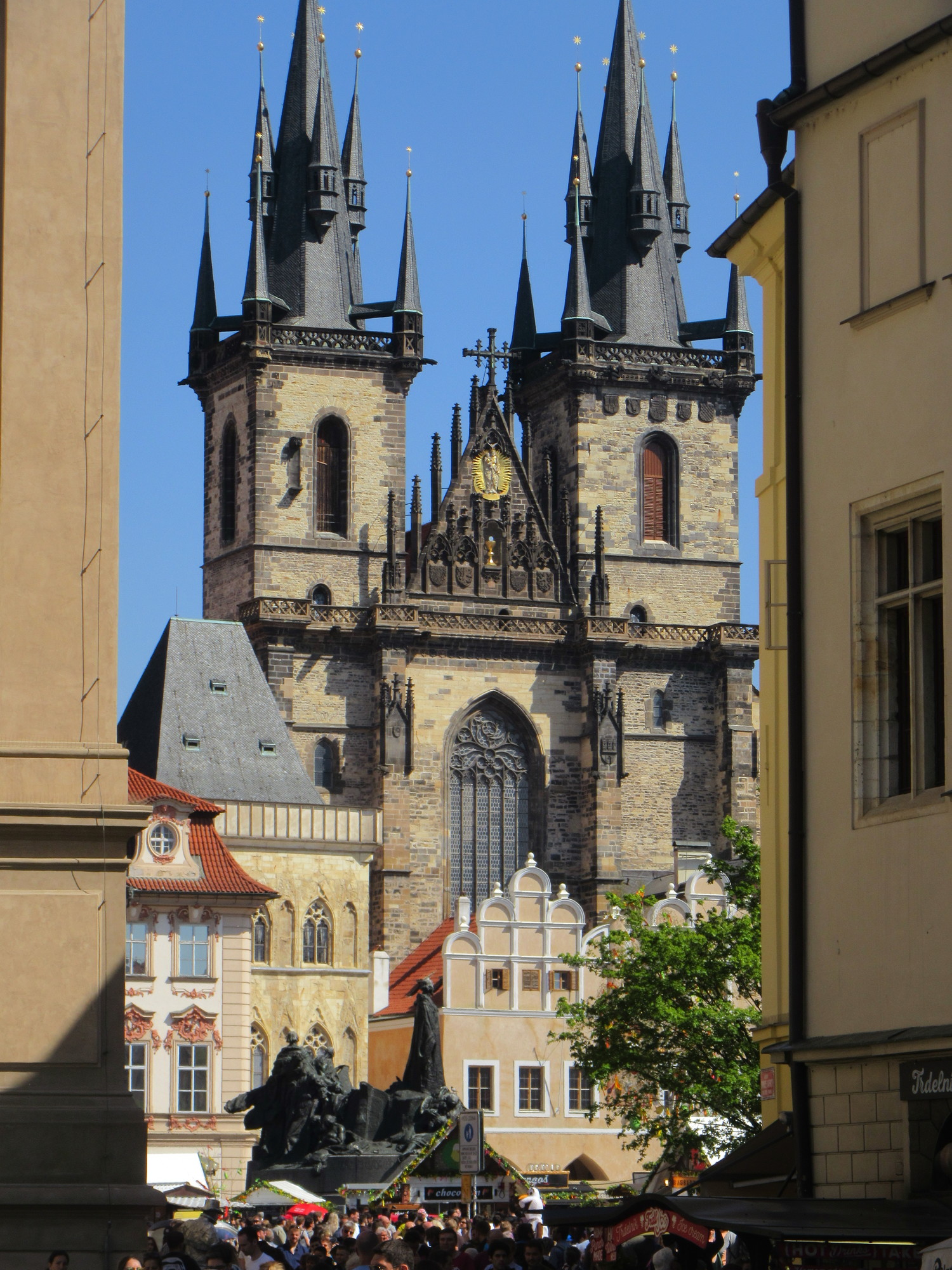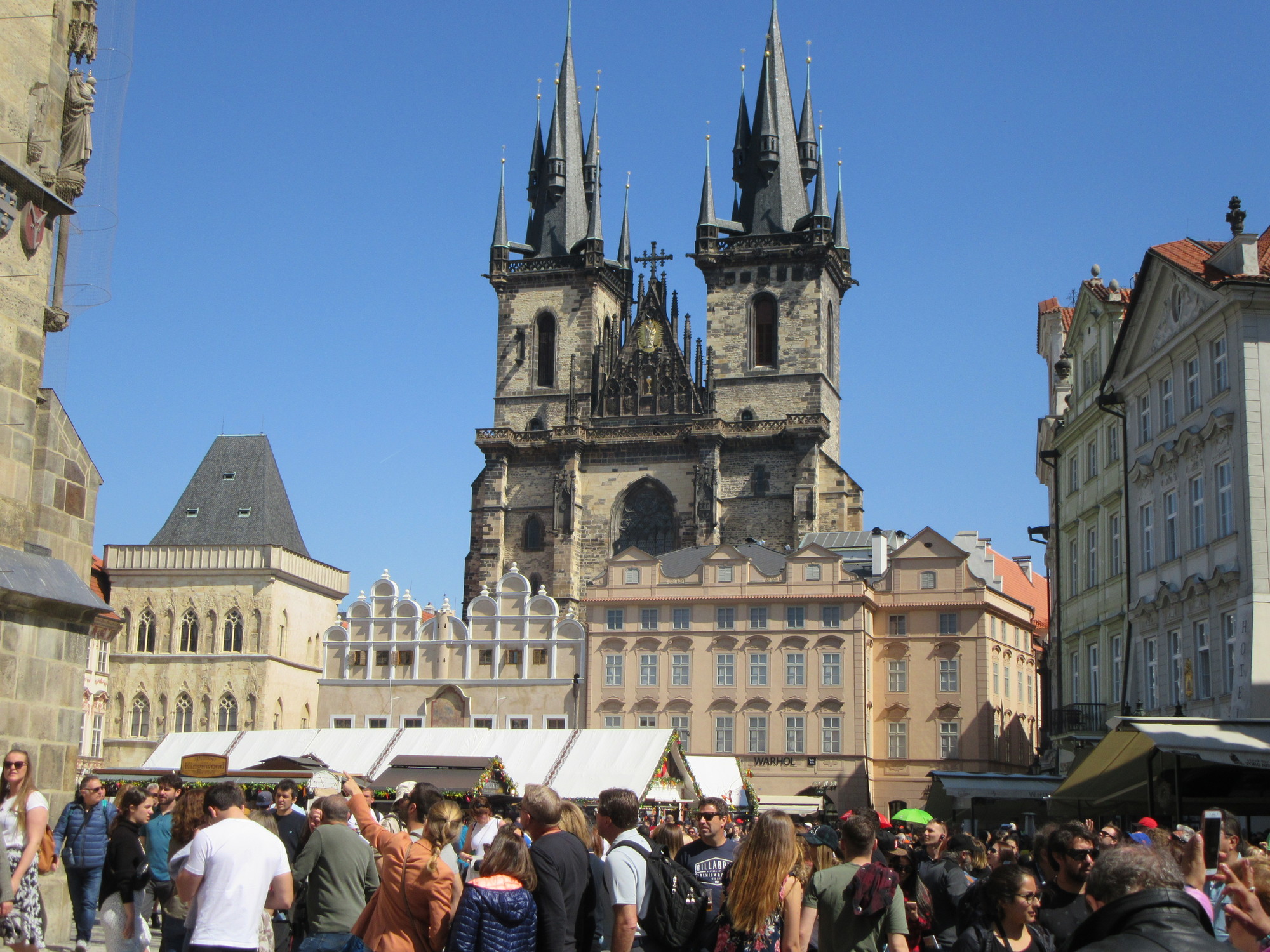 The heart of the fun in Prague is really the Old Town Square. It's here that you find the Tyn Church, with its fanciful towers, the City Hall, which houses the playful astronomical clock, and the memorial to Jan Hus. Together they make up the most iconic of the famous Prague postcard type views.