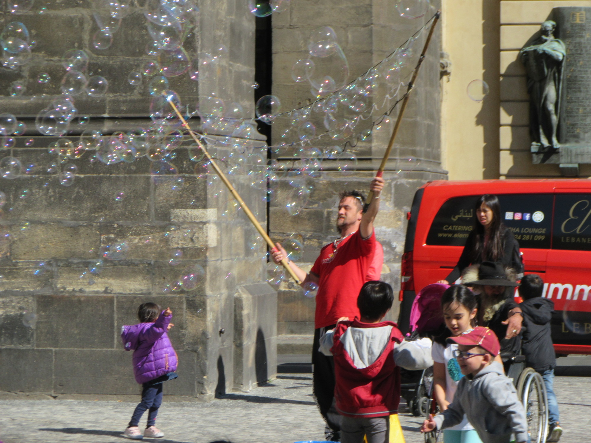 In tourist towns you get street performers, and of course people will interact with them. It was particularly fun to see the kids enjoying this. For example, in these two scenes: