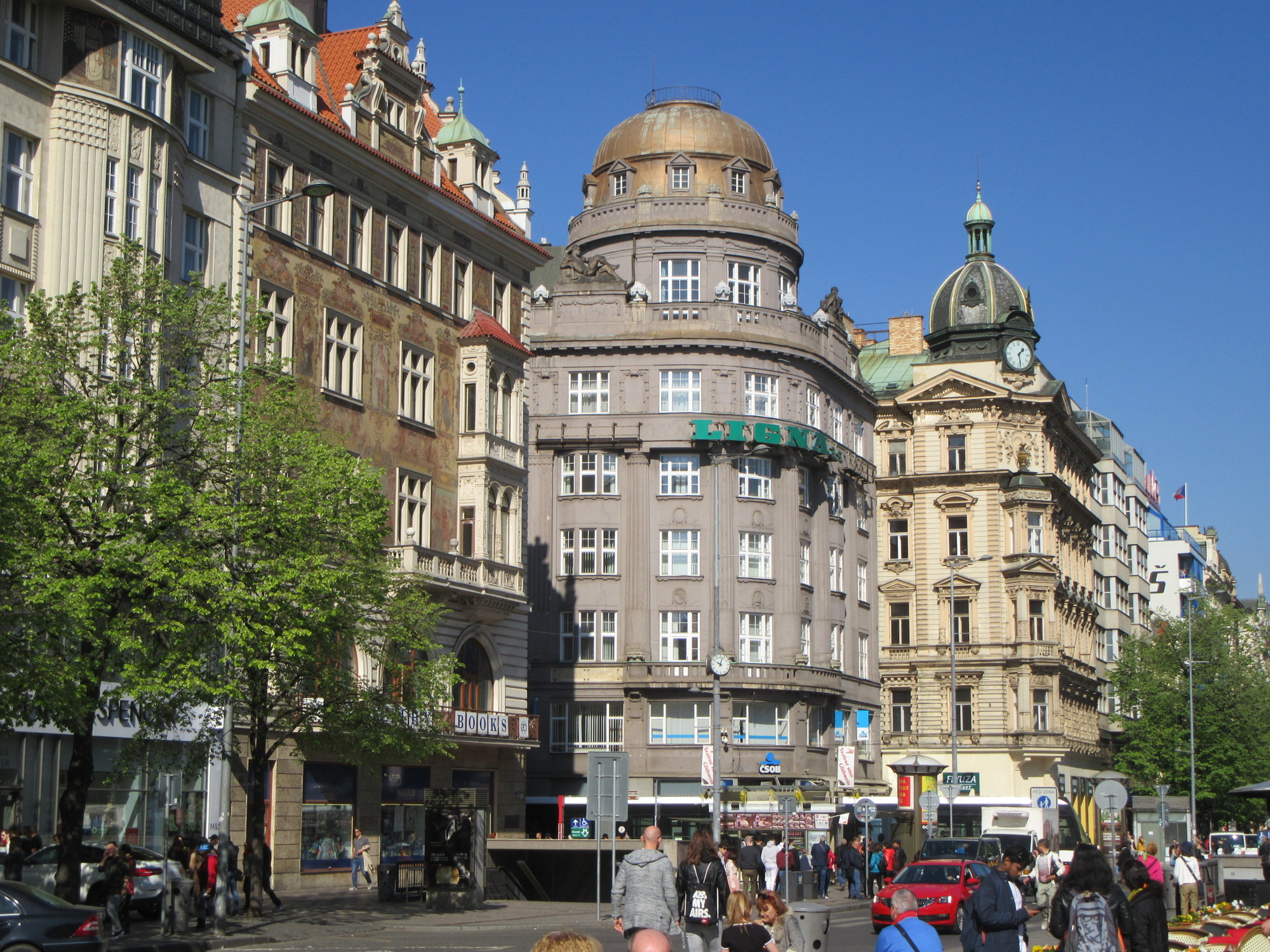 Wenceslas Square was not so far from the hotel and soon we were at the top it. It is not really a square, but a huge rectangular mostly car free boulevard space, with a giant museum and statue of King Wenceslas at one end. The square was magnificent, and also filled with Easter market stalls. Many of these had wonderful foods, many cooked on open beech wood fires. But hang on, before we get totally lost in twiddling around all the aspects of this amazing place and City, here is the plan for a slightly organized presentation.