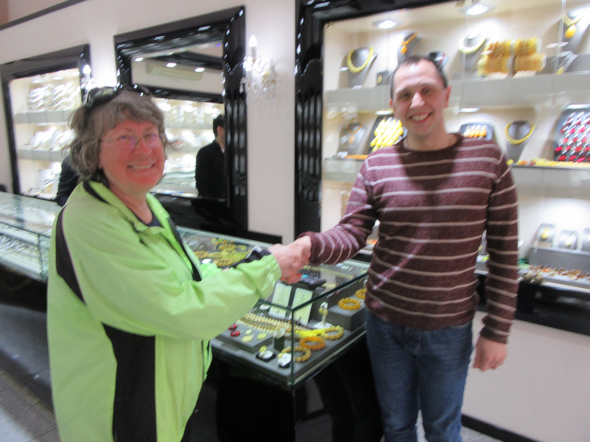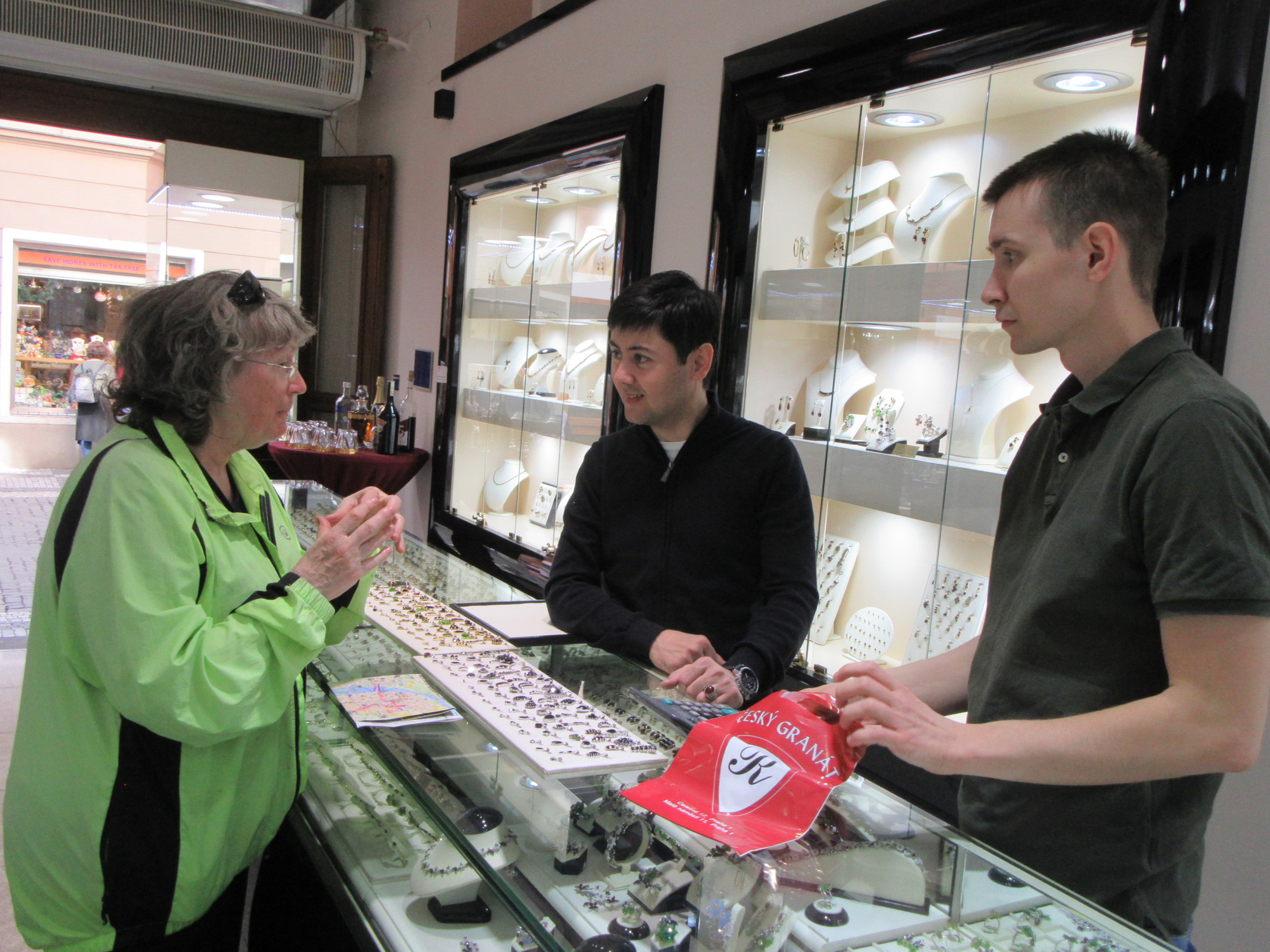 We also managed to make direct contact with a few people. For example, we went into a number of shops selling garnet, which is a special Czech thing, mined in the north of the country. Despite the crowds outside, you were welcomed into each shop, and received very personalized service. We talked to three young men who were running one shop, and found that two were from Moldova. We really learned a lot about cycling there and in Romania, about the culture and behaviours, economy, and so forth. Dodie explained to them about e-bikes, sharing her hard won knowledge about what are the best designs. And when they learned that Dodie's Mom was born at Kishinev - family reunion!