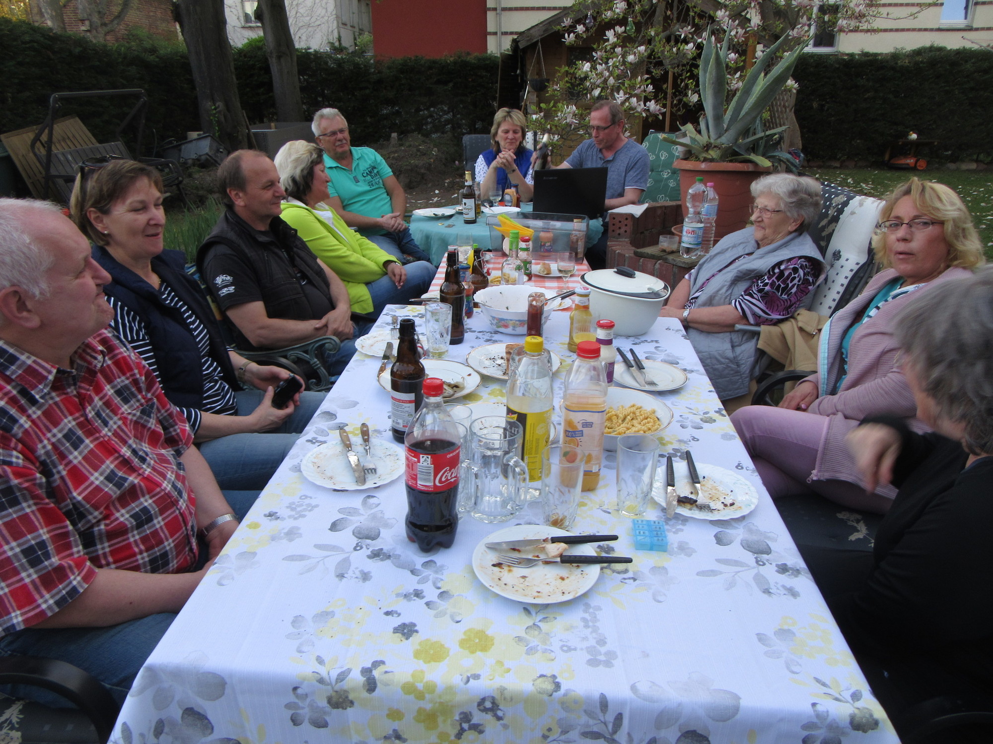 We returned to Jurgen and Birgit's place, where once again parts of the family were to gather, for a BBQ. It was a special event this time, sort of held for us, and for Joe and Karla. We were impressed to see that a goodly portion of the guests arrived by bicycle.