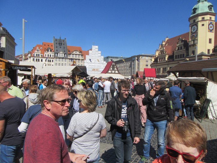Descending from the tower, a little relieved - heights can be scary -, we finally walked into the square in front of the old city hall, where the Easter market was in full swing.