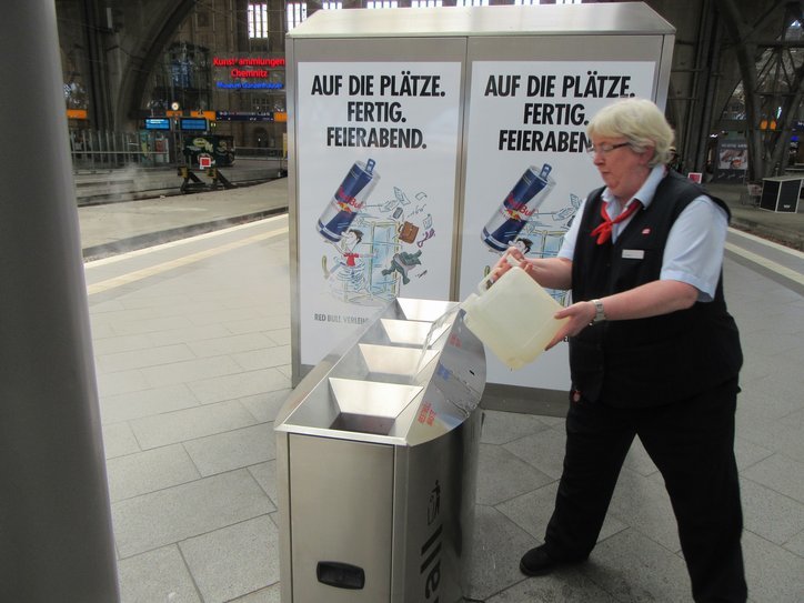 On the way to the train we spotted a fire in a waste basket. Jurgen went and found a DB employee to put it out.