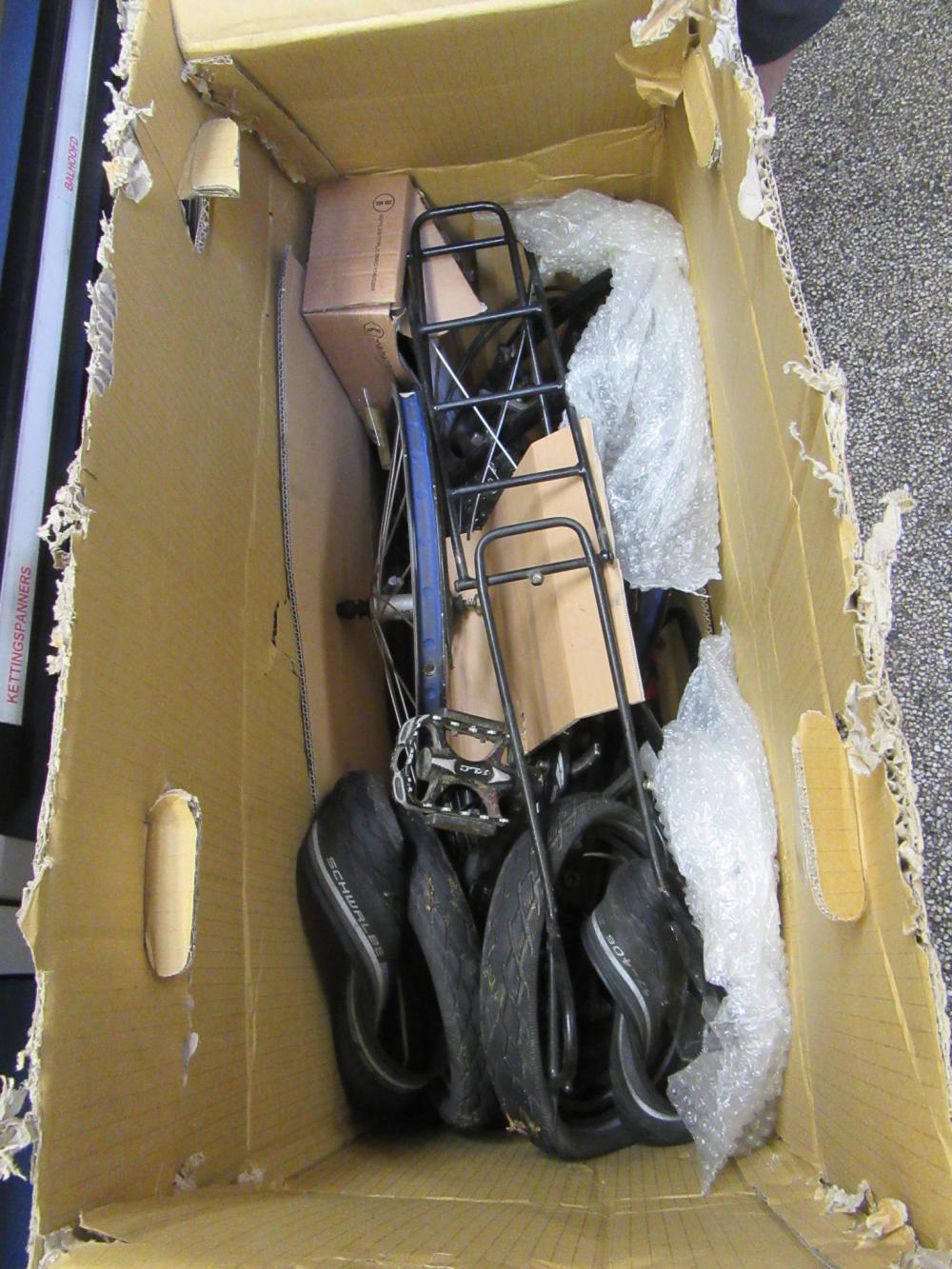 It could be mailed home, but the Dutch post office had limits on the size of a parcel. I went down and made sure about the dimensions. Then the bike shop somehow compressed the Friday into the required space. They put it, ironically into a Reise Mueller box - coffin, I called it. I dragged the box to the post office, mildly surprised that the bike shop did not have one of those famous Dutch cargo bikes for me to use. The post office had no problems about the box, though they did collect over 100 euros to send it.