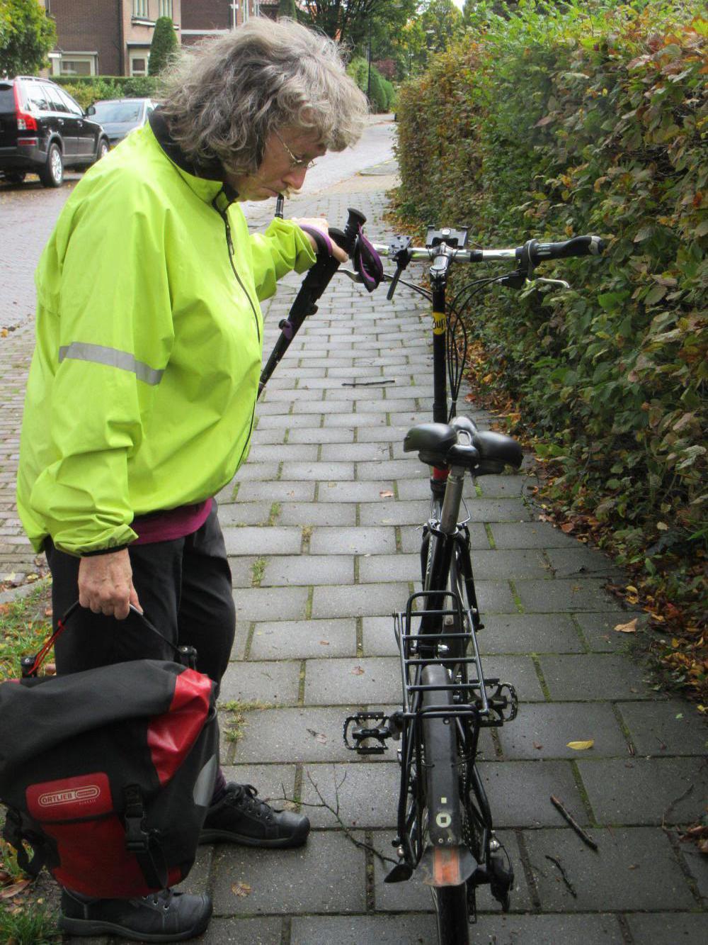 Dodie loved that bike. By then, it had already carried her about 30,000 km. It was the only one, she said, she could be comfortable on. It had been custom built in Eugene, Oregon to, if you ask me, be one of the goofiest specimens around. It had a very tight cockpit, and a handlebar tube so tall I used to refer to it as the "TV antenna". But it all worked for Dodie, and it was her friend. Paradoxically, it was something they would understand in Netherlands, since it gave a very upright stance.