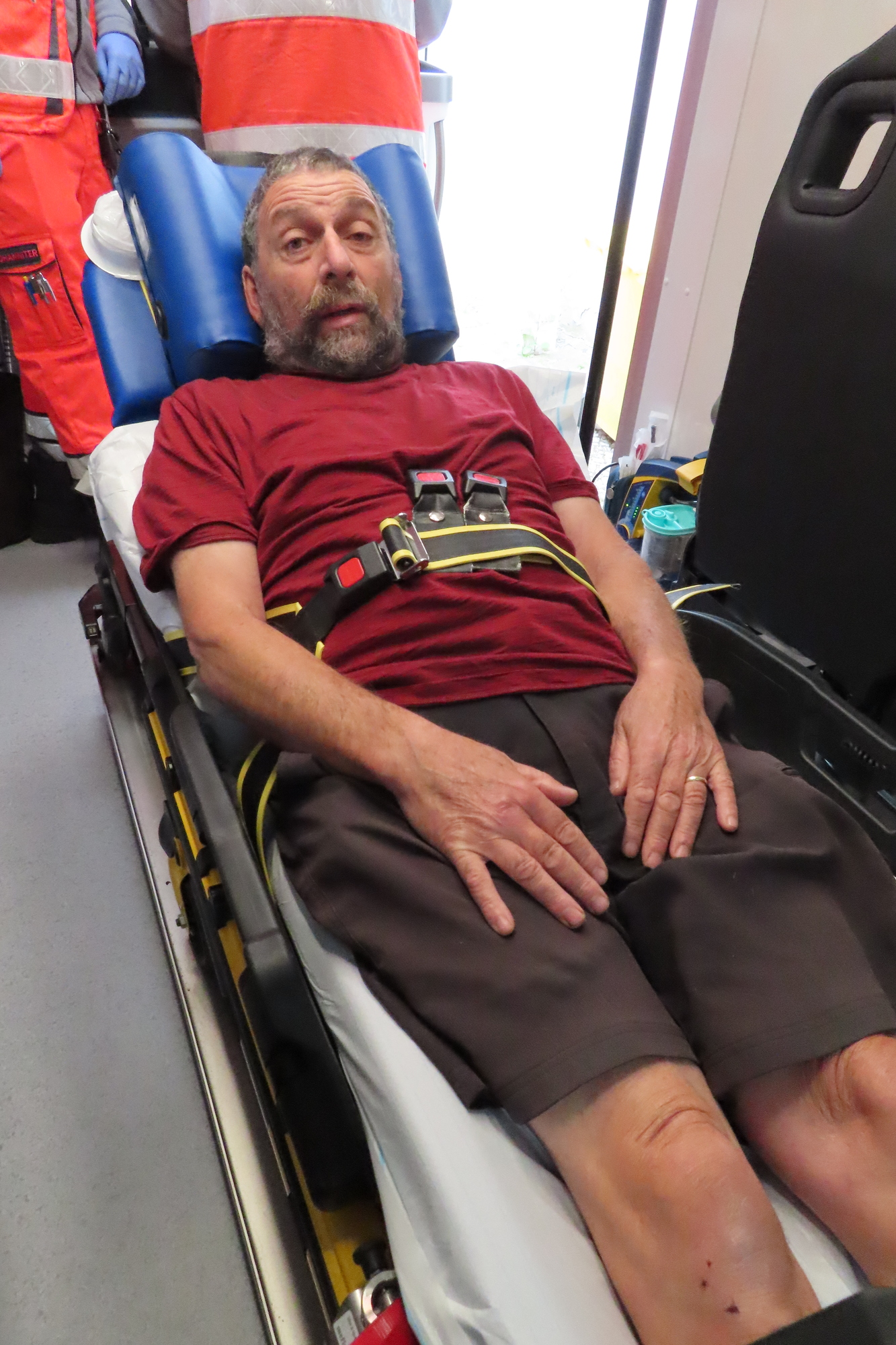 So that's where, as well described in "Grampies Repositioning Ride" , just two days out of Leipzig I suddenly could barely walk, or see, or eat. Carrying on nonetheless, I cycled 15 km beyond the town of Halle, where I collapsed for 30 minutes. Pushing on, I finally fell off the bike 15 km from Calbe. A passing motorist picked up the bike for me, and I managed to pedal to Calbe. But after that, I was done, and the story became one of ambulance, CT Scan, and finally, limping home to Canada.