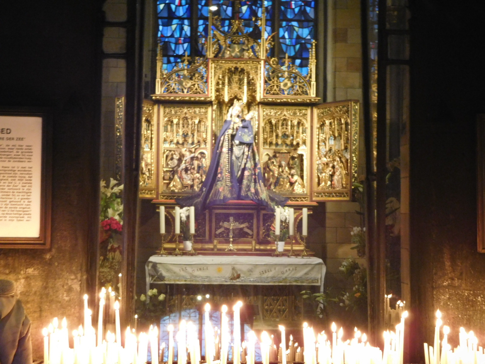 The town centre has a number of churches, and there is one with a decidedly Catholic touch. It's the Basilica of Our Lady of the Sea. This houses a Mary statue, for some reason called the "Star of the Sea". There is little explanation in the area around it, but lots of people light candles there. It turns out to be something of a pilgrimage site. See here.