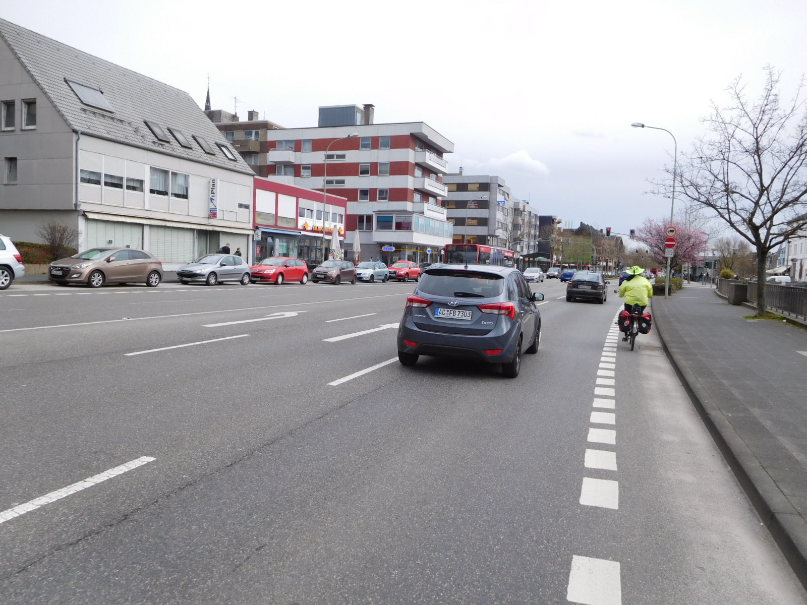 Aachen marked the end of the idyllic and neat Dutch countryside and the start of a more urbanized northern Germany. Aachen itself did have a nice core, with several walking streets, but as we proceeded out the eastern side we found a standard city with miscellaneous retail and lots of traffic. Bike lanes came and went and we often were either riding the sidewalk or mixing it up directly with the cars.