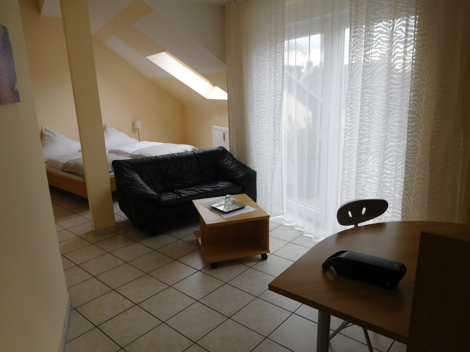 Bike lanes came and went, all the way to Duren. In Duren we found the place we had booked easily, since it was directly on our route. Although named the Hotel Hilgers, it is more of a B&B. The door was answered by a very pleasant grandmotherly lady, who seemed very tentative about such matters as how to pay and when would breakfast be. But the actual place was first rate. Our bikes went into a garage and we mounted immaculate marble steps to our room. The room is at least 20x20, with tile floors, desk, fluffy duvets, balcony, and skylights. It couldn't be better, really, except that the wifi is a little slow.