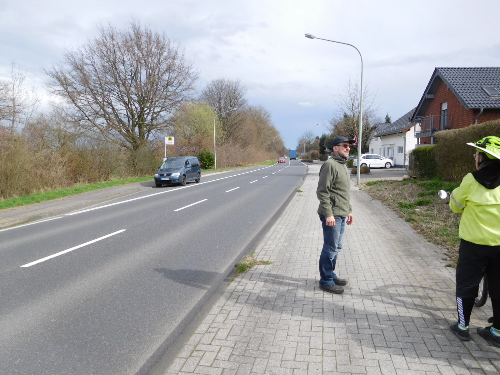 The temperature continued to climb during the day, and at one point hit 22. We stopped to take off some layers, which put us at the side of the road with some clothes on the ground. That was enough to have a man stop his car on the opposite side and come across to see if we were ok. The man turned out to be a cycling enthusiast, and he told us about a trip he had done with his daughter, along the Rhine to Switzerland. He wished us a good trip, and was on his way.