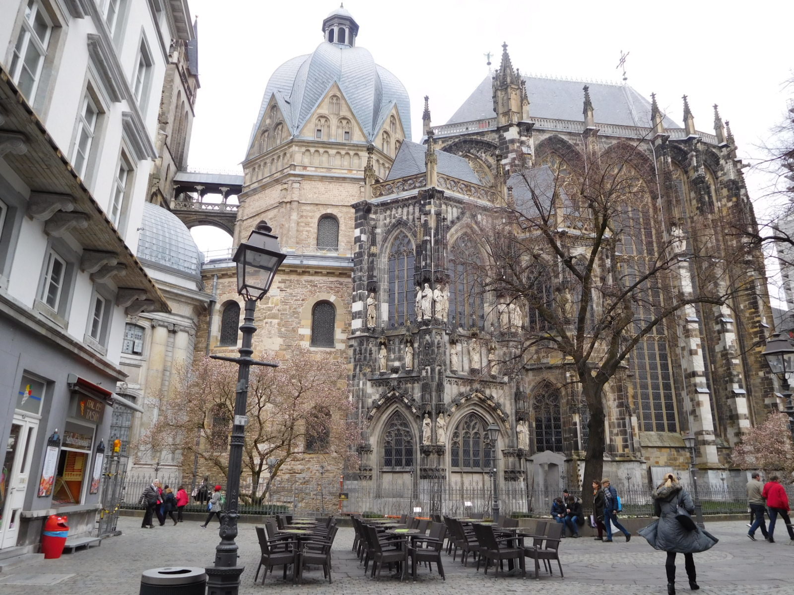 We had planned to go beyond Aachen, to Duren - which would be a further 35 km. Looking at our batteries and the possibility of further hills, we thought it could be prudent to add a little charge. We had thought out this scenario and for that reason had along a double power (4 amp) charger. Our idea was to find a cafe and to take a one hour break while plugged in. Of course to do this we would need a spot where we could watch the bikes from a window seat, plus a convenient plug and maybe the agreement of the staff for us to use the plug.