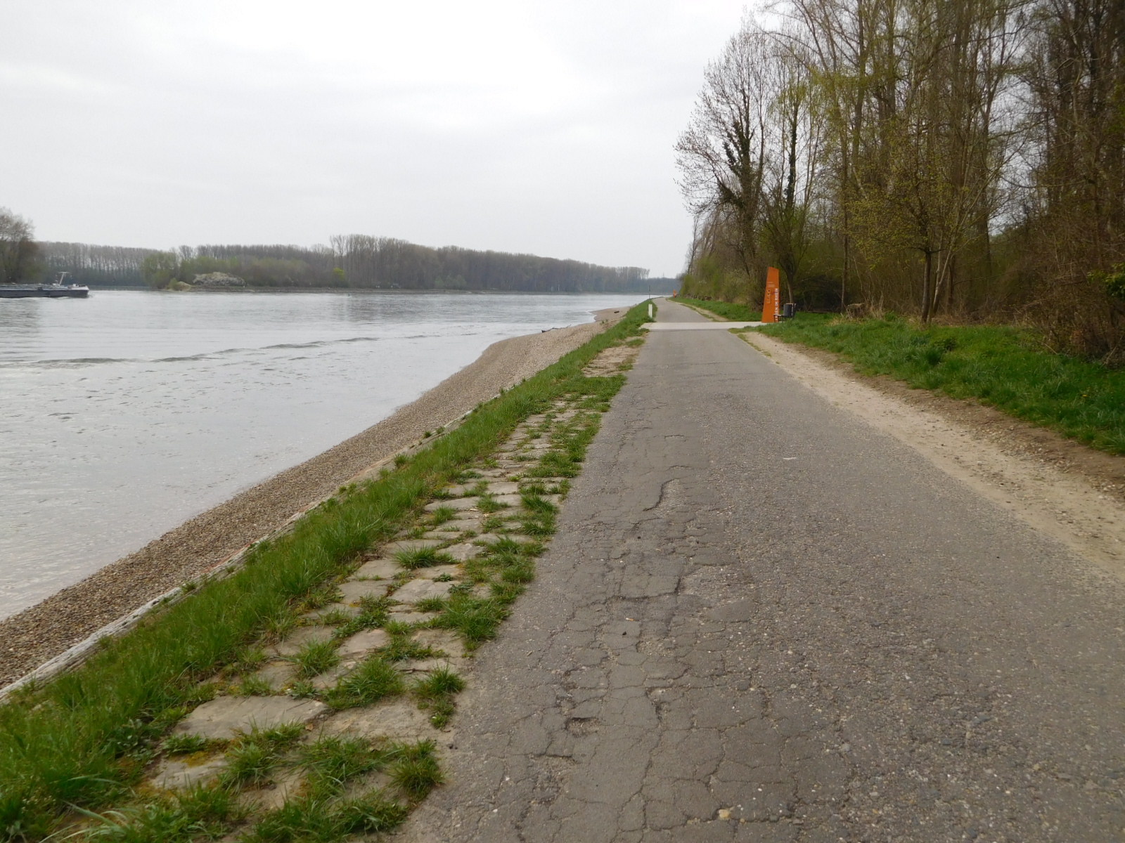 Lauterbourg has a clain to fame other than Suzuki storage. It is just inside the French border, since the Rhine divides France and Germany from this point south to Basel. Our passage into France was not marked in any way, a really casual approach considering all the border disputing that has gone on here in the last 200 years. We only knew for sure that we had changed countries when a bike path sign turned up in French.
