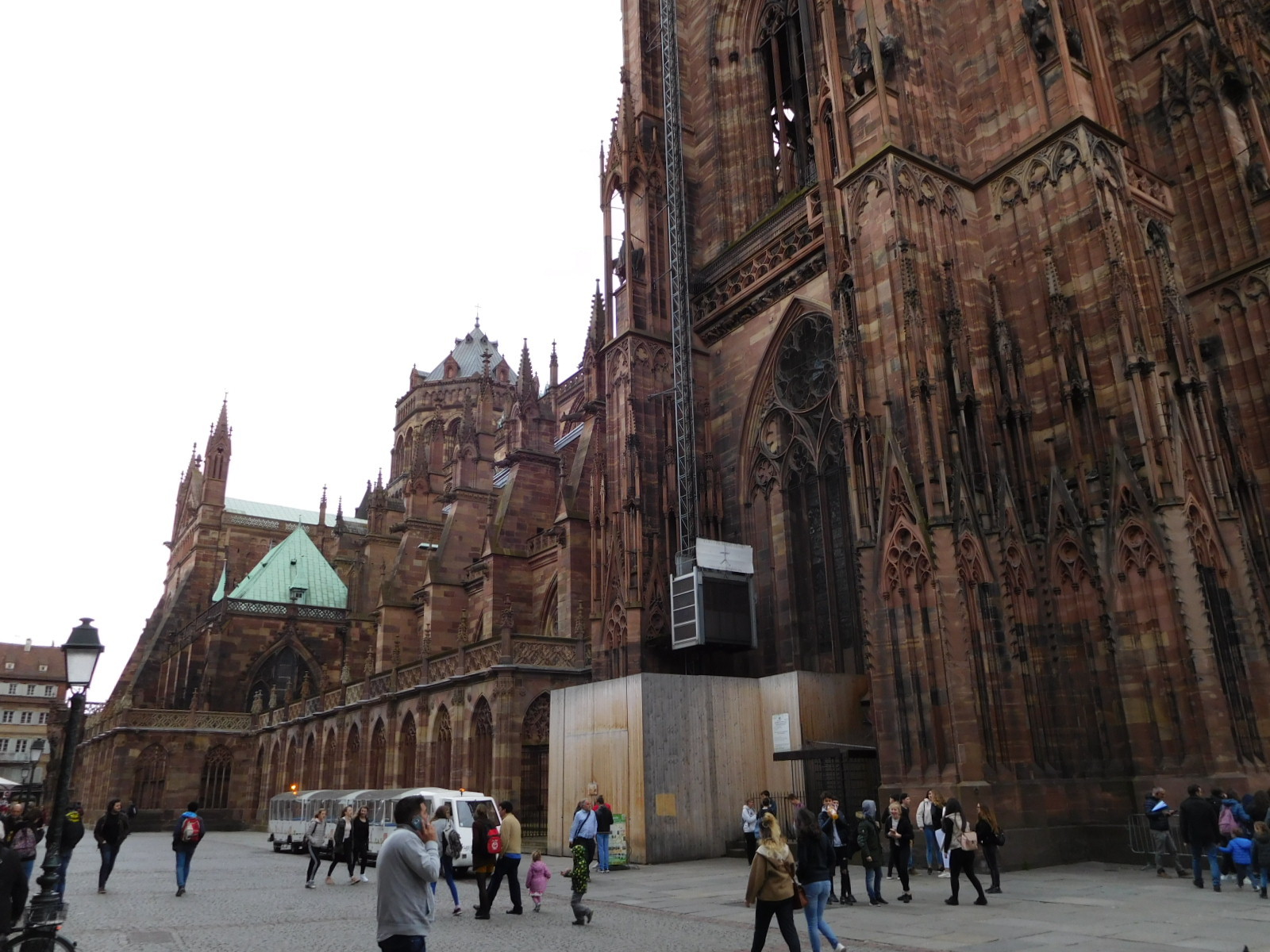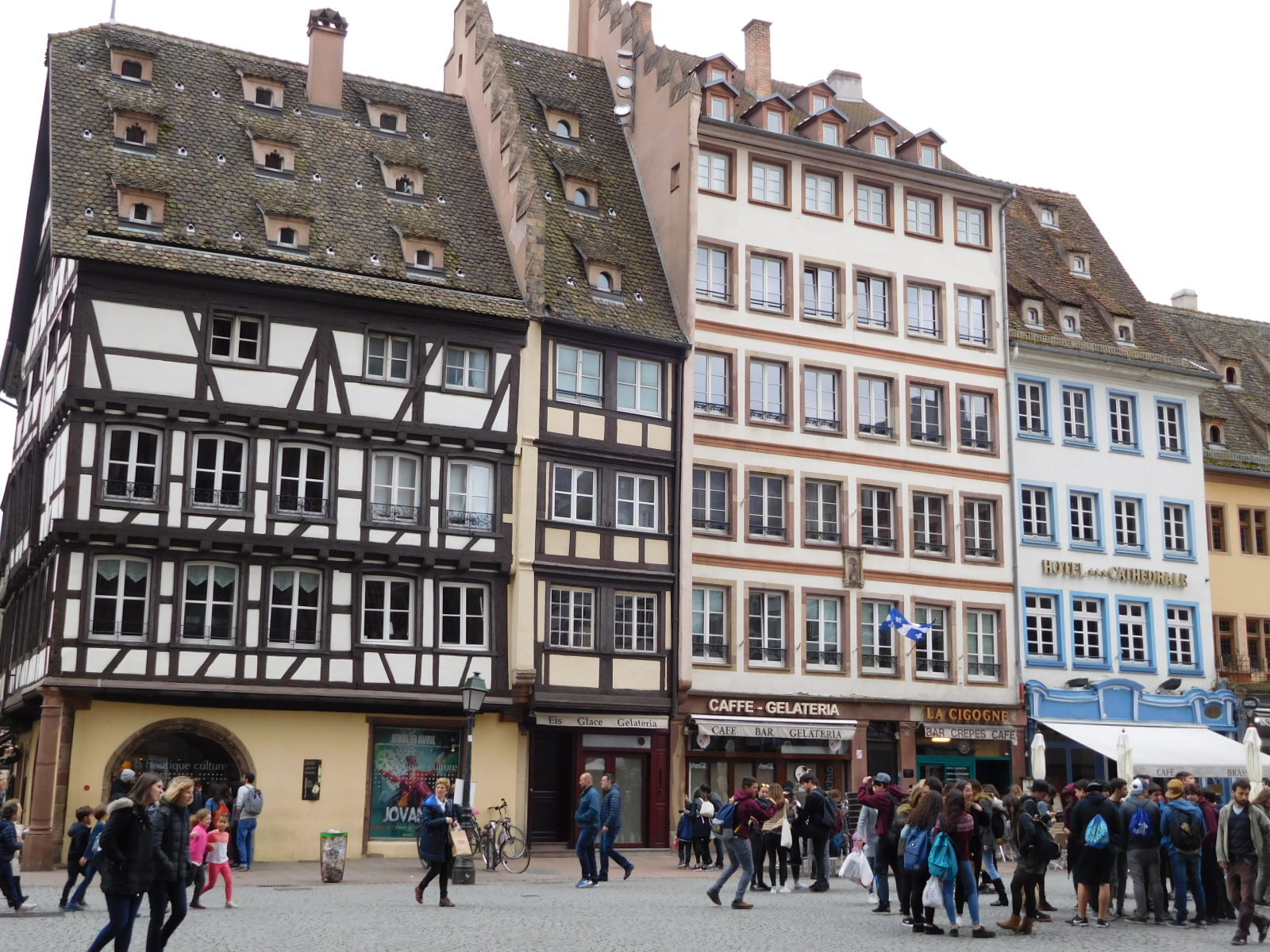 The streets around the cathedral also have their special flair. First there is the sheer bulk of the cathedral, which is even better appreciated from the side than from straight on. Then there are the many Alsace style buildings that surround the square, and of course the crowds of people from around the world.