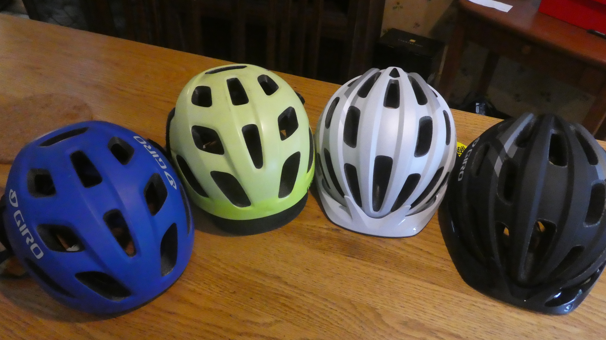 For some reason, these are all Giro brand, and perhaps importantly they all sport MIPS technology. MIPS stands for Multi-directional Impact Protection System. It means the helmet can twist on impact, leaving your head less twisted. That sounds good to us. The other two helmets are already in Germany. Dodie has somehow shoehorned two into our packing for Mexico, so the helmet family is also under control.